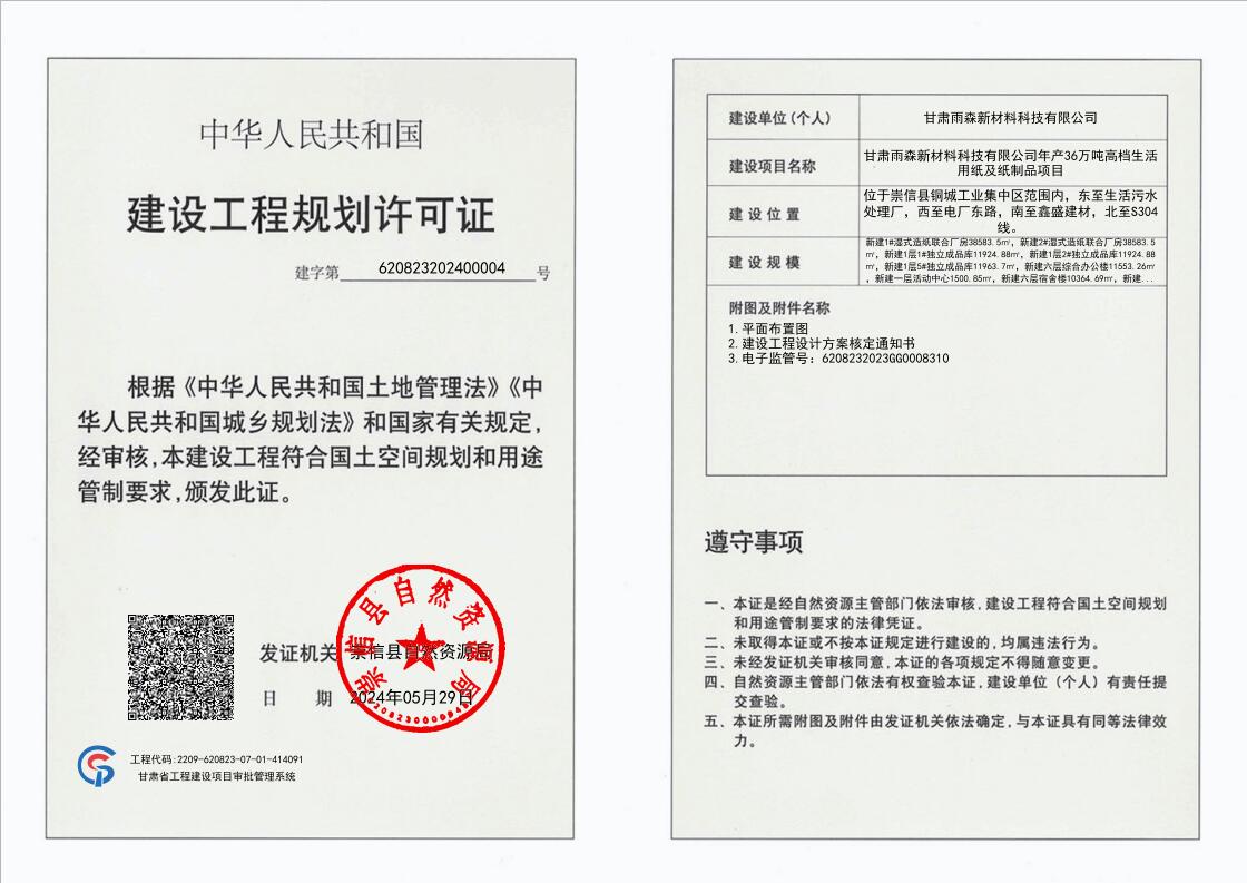 甘肃雨森新材料科技有限公司年产36万吨高档生活用纸及纸制品项目 建设工程规划许可证 公示 发文日期:2024-05-30 17:22 来源:崇信县自然资源局 作者:崇信县自然资源局 编辑:崇信县自然资源局 扫一扫在手机打开当前页 上一篇: 崇信县城区供热管道改造建设项目批前公示 下一篇: 崇信县城区供热管道改造建设项目 建设工程规划许可证 公示