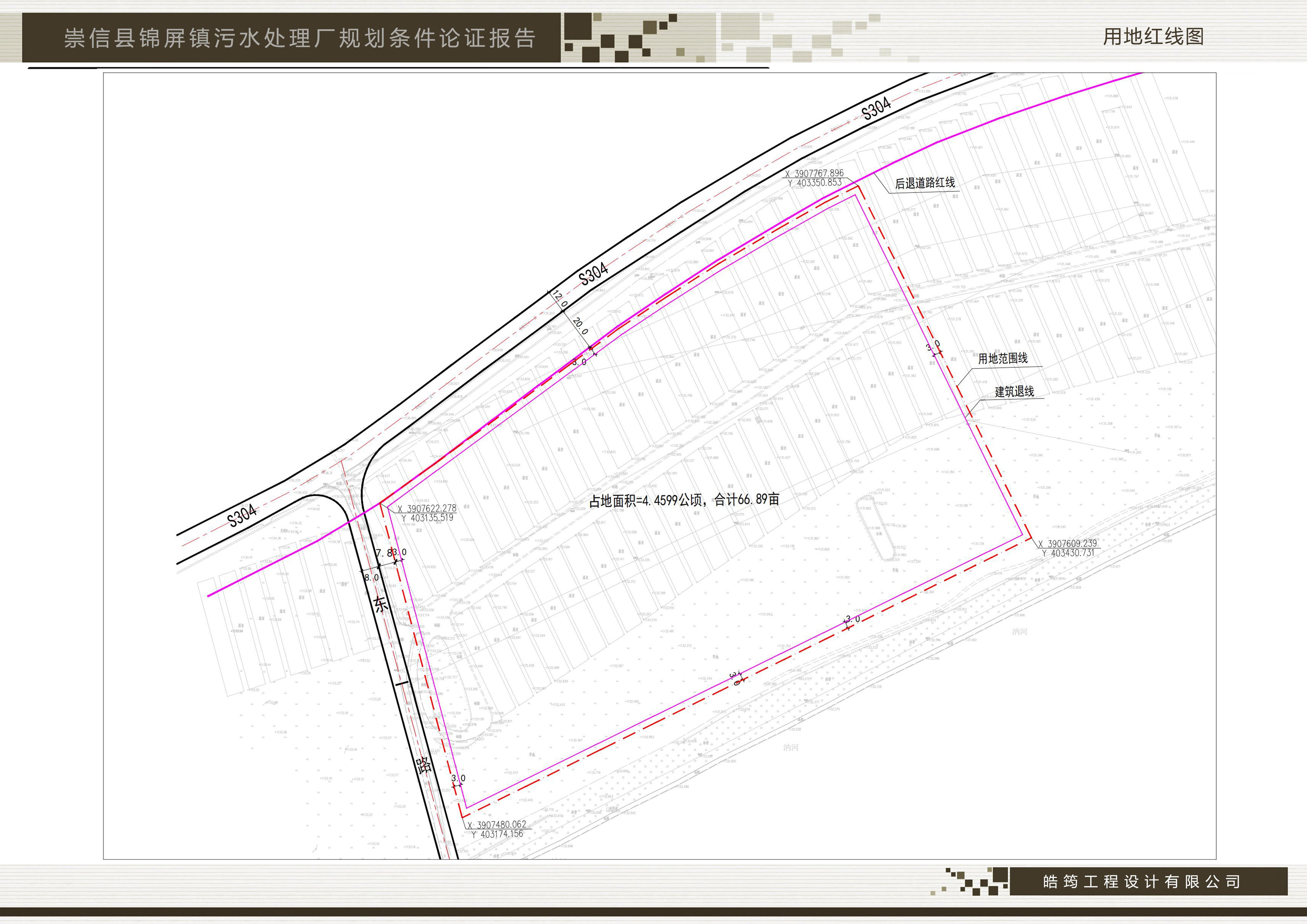 因项目建设需要,2023年11月1日,县自然资源国土空间规划委员会2023年第4次全体会议研究讨论决定对原《崇信县锦屏镇污水处理厂规划条件制定报告》进行变更调整。总占地面积调整为4.4599公顷(合66.89亩),用地性质为排水用地(1302),容积率不大于0.5,建筑密度不大于35%,建筑高度不大于15米,绿地率不小于20%,规划建筑退让建设用地边界线不小于3米,退北侧省道304线20米,退西侧规划东一路6米。