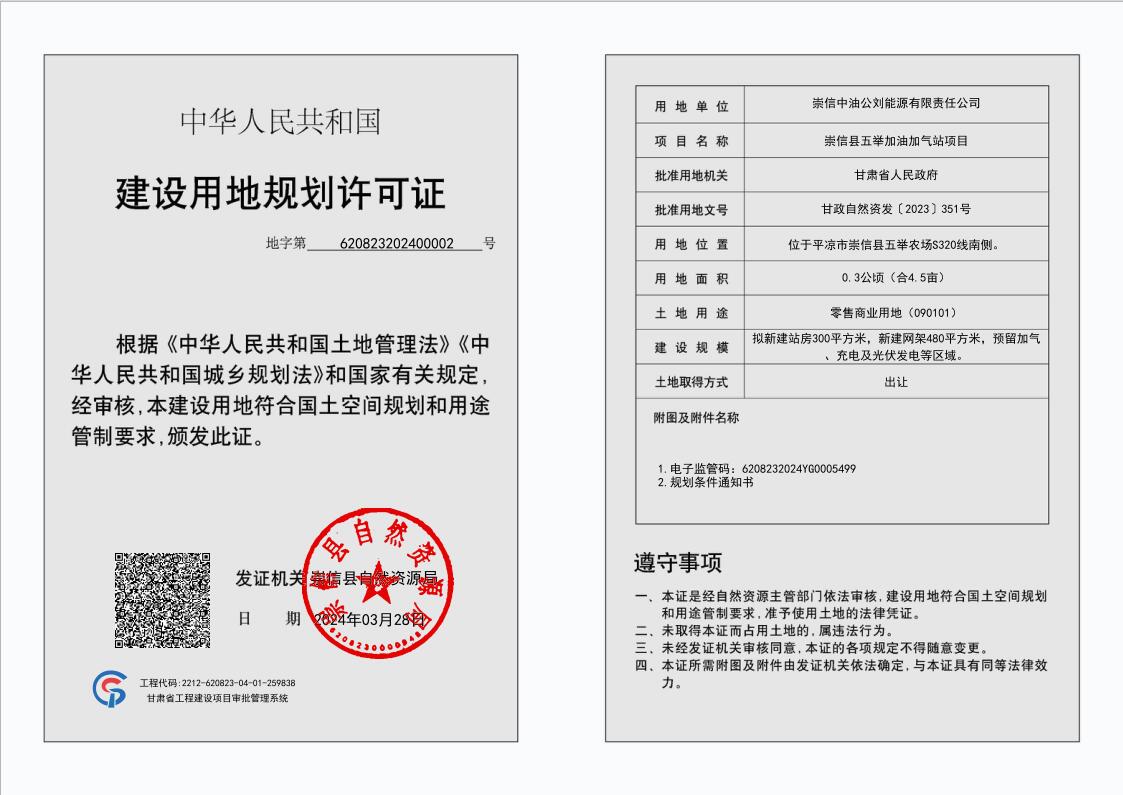 崇信县五举加油加气站项目 建设用地规划许可证 公示 发文日期:2024-03-29 17:13 来源:崇信县自然资源局 作者:崇信县自然资源局 编辑:崇信县自然资源局 扫一扫在手机打开当前页 上一篇: 崇信县第六幼儿园建设项目 建设用地规划许可证 公示 下一篇: 崇信县城区供热管道改造建设项目 建设用地规划许可证 公示