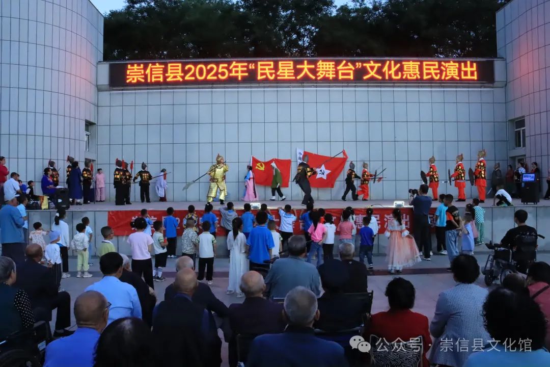 现场气氛热烈,掌声、喝彩声此起彼伏。“在家门口就能看到这么精彩的演出,既重温了红色经典,又感受到传统文化的魅力!” 一位戏迷激动地说。此次活动不仅以群众喜闻乐见的形式传承红色基因,更通过 “民星大舞台” 搭建起全民参与的文化平台,进一步打响崇信县文化惠民品牌,为推动文旅融合注入新活力。