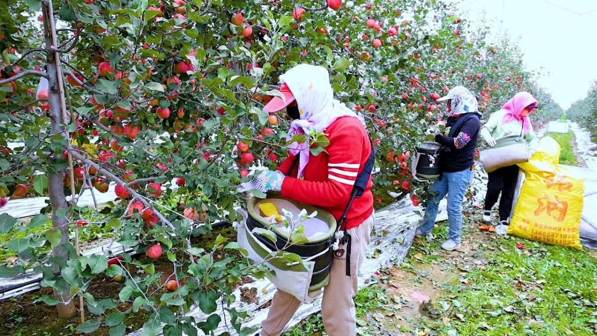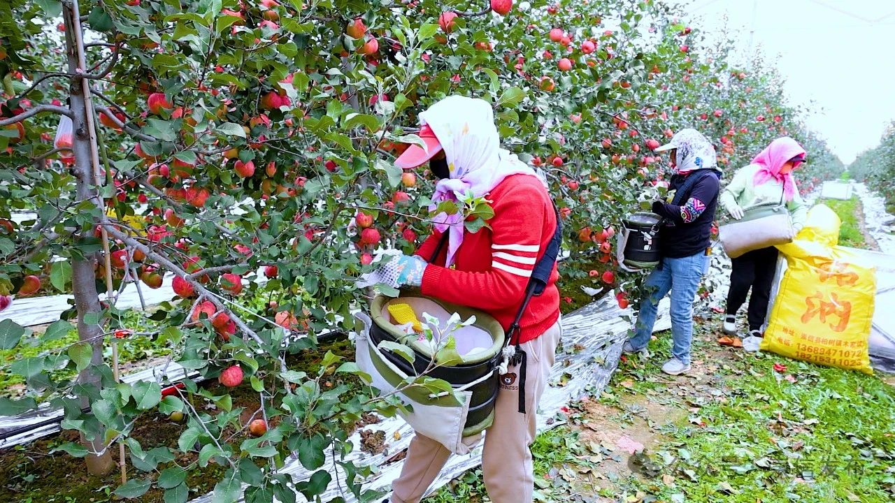 走进崇信县龙泉源现代农业苹果种植基地,工人正穿梭于挂满红彤彤苹果的果树间,自8月份开始采摘苹果以来,每天都有货车从这里将当日已完成分选、打包和装箱的苹果运往全国各地。持续两个多月的苹果采收也给附近的村民带来了增收的机会。来自柏树镇木家坡村的村民刘耀瑞正开着拖拉机运送苹果。今年是他在苹果基地务工的第三年。崇信县柏树镇东风村村民刘耀瑞说:“我们从8月份开始采摘苹果,我在里面挑苹果筐,大概要两个月,一天的收入150元,两个月下来能挣9000元左右。”