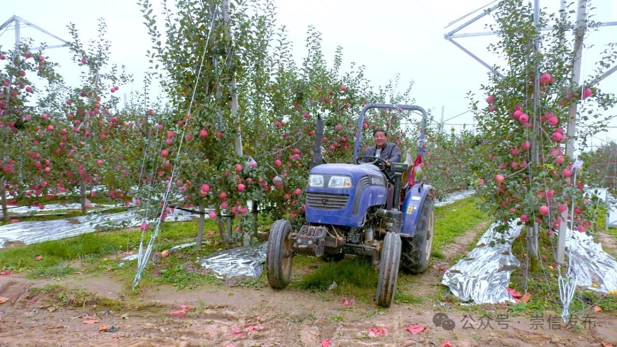 金秋时节,崇信县南北二塬的苹果渐次成熟,已经进入采摘季。走进柏树镇信家庄村的果园,果香四溢,红彤彤的苹果挂满枝头,果农穿梭在果园中采摘、转运、装车,一派繁忙景象。