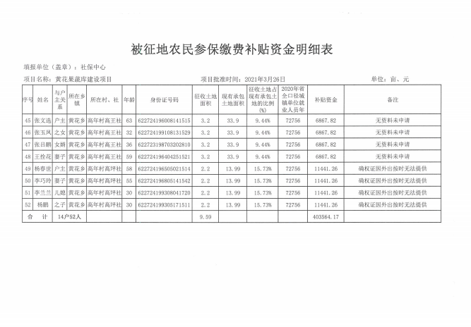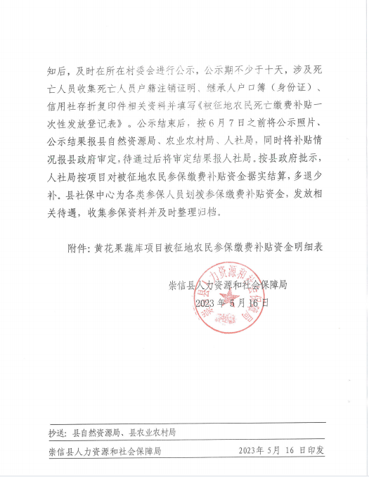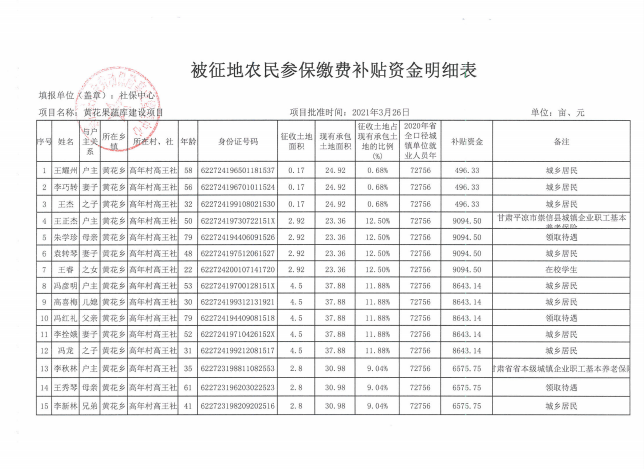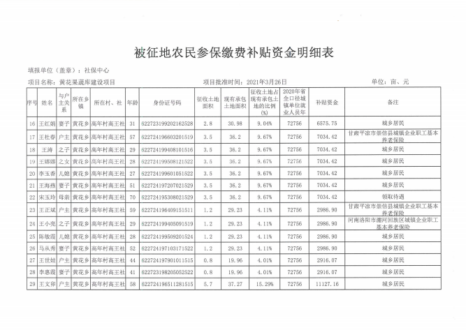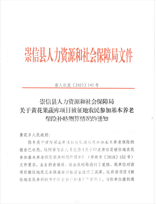 黄花果蔬库被征地农民参加养老保险补贴测算情况的通知 发文日期:2023-05-20 14:05 来源:崇信县黄花乡 作者:梁俊龙 编辑:梁俊龙 扫一扫在手机打开当前页 上一篇: 黄花乡高年村2023年5月份农村特困分散供养人员资金发放花名册 下一篇: 高庄子村2023年3月份临时救助资金发放花名册