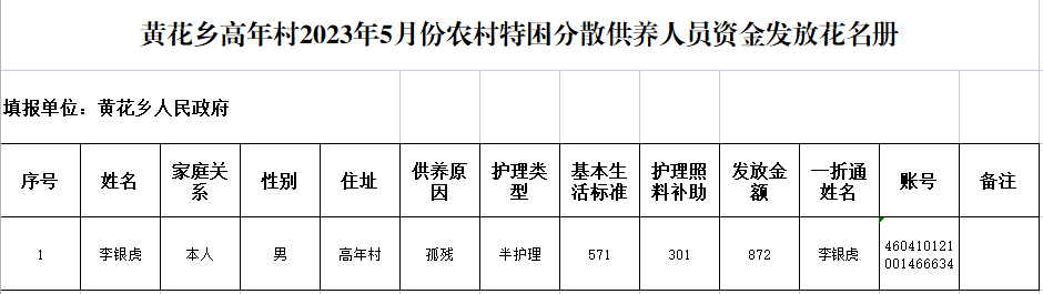 黄花乡高年村2023年5月份农村特困分散供养人员资金发放花名册 发文日期:2023-05-10 14:13 来源:崇信县黄花乡 作者:梁俊龙 编辑:梁俊龙 扫一扫在手机打开当前页 上一篇: 黄花乡高年村2023年5月份农村特困集中供养人员资金发放花名册 下一篇: 黄花果蔬库被征地农民参加养老保险补贴测算情况的通知