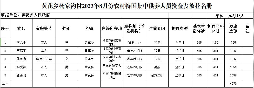 黄花乡杨家沟村2023年8月份农村特困集中供养人员资金发放花名册 发文日期:2023-09-05 11:26 来源:崇信县黄花乡 作者:梁俊龙 编辑:梁俊龙 扫一扫在手机打开当前页 上一篇: 黄花乡油府庄村2023年8月份农村特困集中供养人员资金发放花名册 下一篇: 黄花乡水磨村2023年8月份农村特困集中供养人员资金发放花名册