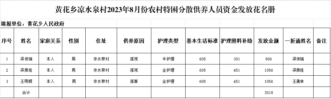 黄花乡凉水泉村2023年8月份农村特困分散供养人员资金发放花名册 发文日期:2023-09-05 11:03 来源:崇信县黄花乡 作者:梁俊龙 编辑:梁俊龙 扫一扫在手机打开当前页 上一篇: 黄花乡马寨子村2023年8月份农村特困分散供养人员资金发放花名册 下一篇: 黄花乡凉水泉村2023年8月份农村特困集中供养人员资金发放花名册