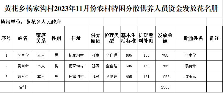 黄花乡杨家沟村2023年11月份农村特困分散供养人员资金发放花名册 发文日期:2023-11-15 11:48 来源:崇信县黄花乡 作者:梁俊龙 编辑:梁俊龙 扫一扫在手机打开当前页 上一篇: 黄花乡高年村2023年12月份农村特困分散供养人员资金发放花名册 下一篇: 黄花乡水磨村2023年11月份农村特困分散供养人员资金发放花名册