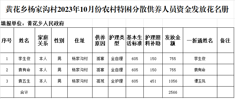 黄花乡杨家沟村2023年10月份农村特困分散供养人员资金发放花名册 发文日期:2023-10-13 11:22 来源:崇信县黄花乡 作者:梁俊龙 编辑:梁俊龙 扫一扫在手机打开当前页 上一篇: 黄花乡高庄子村2023年11月份农村特困分散供养人员资金发放花名册 下一篇: 黄花乡水磨村2023年10月份农村特困分散供养人员资金发放花名册