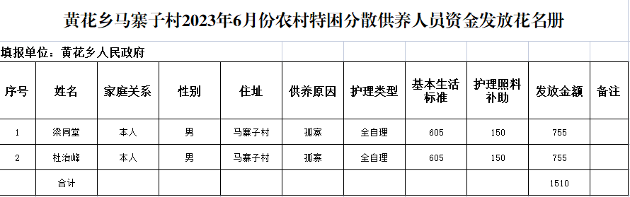 黄花乡马寨子村2023年6月份农村特困分散供养人员资金发放花名册 发文日期:2023-06-15 13:28 来源:崇信县黄花乡 作者:梁俊龙 编辑:梁俊龙 扫一扫在手机打开当前页 上一篇: 黄花乡水磨村2023年6月份农村特困分散供养人员资金发放花名册 下一篇: 黄花乡凉水泉村2023年6月份农村特困集中供养人员资金发放花名册