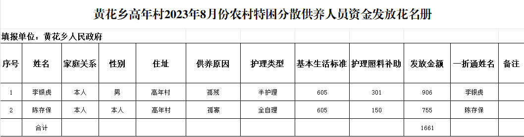 黄花乡高年村2023年8月份农村特困分散供养人员资金发放花名册 发文日期:2023-09-05 10:09 来源:崇信县黄花乡 作者:梁俊龙 编辑:梁俊龙 扫一扫在手机打开当前页 上一篇: 黄花乡高年村2023年8月份农村特困集中供养人员资金发放花名册 下一篇: 黄花乡油府庄村2023年7月份农村特困集中供养人员资金发放花名册