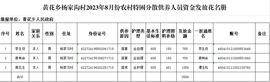 黄花乡杨家沟村2023年8月份农村特困分散供养人员资金发放花名册 发文日期:2023-09-05 11:31 来源:崇信县黄花乡 作者:梁俊龙 编辑:梁俊龙 扫一扫在手机打开当前页 上一篇: 黄花乡高年村2023年10月份农村特困分散供养人员资金发放花名册 下一篇: 黄花乡油府庄村2023年8月份农村特困集中供养人员资金发放花名册