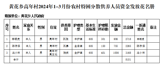 黄花乡高年村2024年1-3月份农村特困分散供养人员资金发放花名册 发文日期:2024-03-04 11:53 来源:崇信县黄花乡 作者:梁俊龙 编辑:梁俊龙 扫一扫在手机打开当前页 上一篇: 黄花乡高庄子村2024年1-3月份农村特困分散供养人员资金发放花名册 下一篇: 黄花乡高庄子村2023年12月份农村特困分散供养人员资金发放花名册