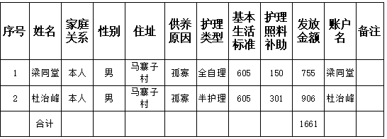 黄花乡马寨子村2024年8月份农村特困分散供养人员资金发放花名册 发文日期:2024-08-05 10:03 来源:崇信县黄花乡 作者:梁俊龙 编辑:梁俊龙 扫一扫在手机打开当前页 上一篇: 黄花乡水磨村2024年8月份农村特困分散供养人员资金发放花名册 下一篇: 黄花乡凉水泉村2024年8月份农村特困分散供养人员资金发放花名册