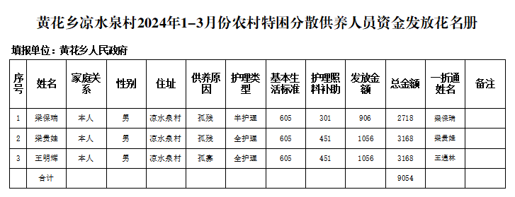 黄花乡凉水泉村2024年1-3月份农村特困分散供养人员资金发放花名册 发文日期:2024-03-04 15:39 来源:崇信县黄花乡 作者:梁俊龙 编辑:梁俊龙 扫一扫在手机打开当前页 上一篇: 黄花乡马寨子村2024年1-3月份农村特困分散供养人员资金发放花名册 下一篇: 黄花乡黄花塬村2024年1-3月份农村特困分散供养人员资金发放花名册