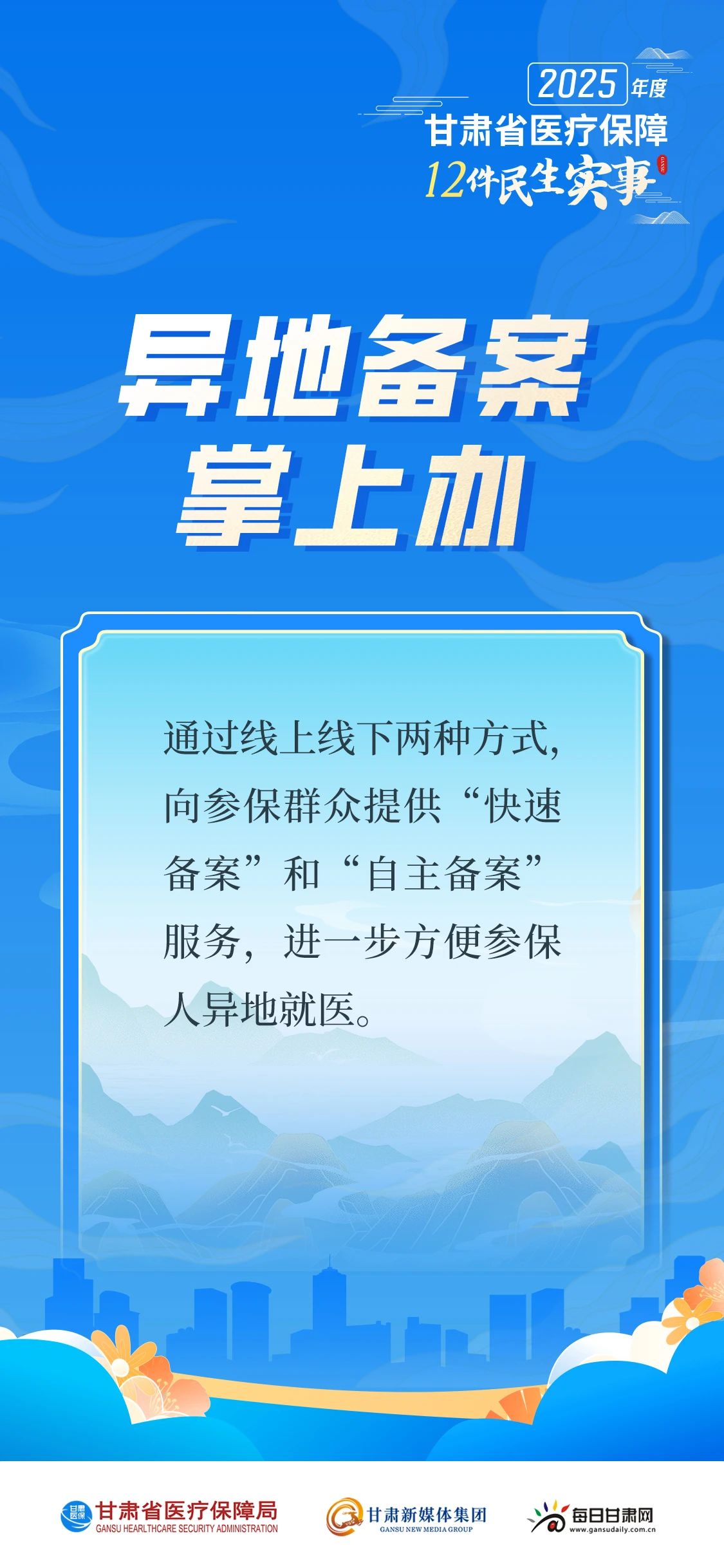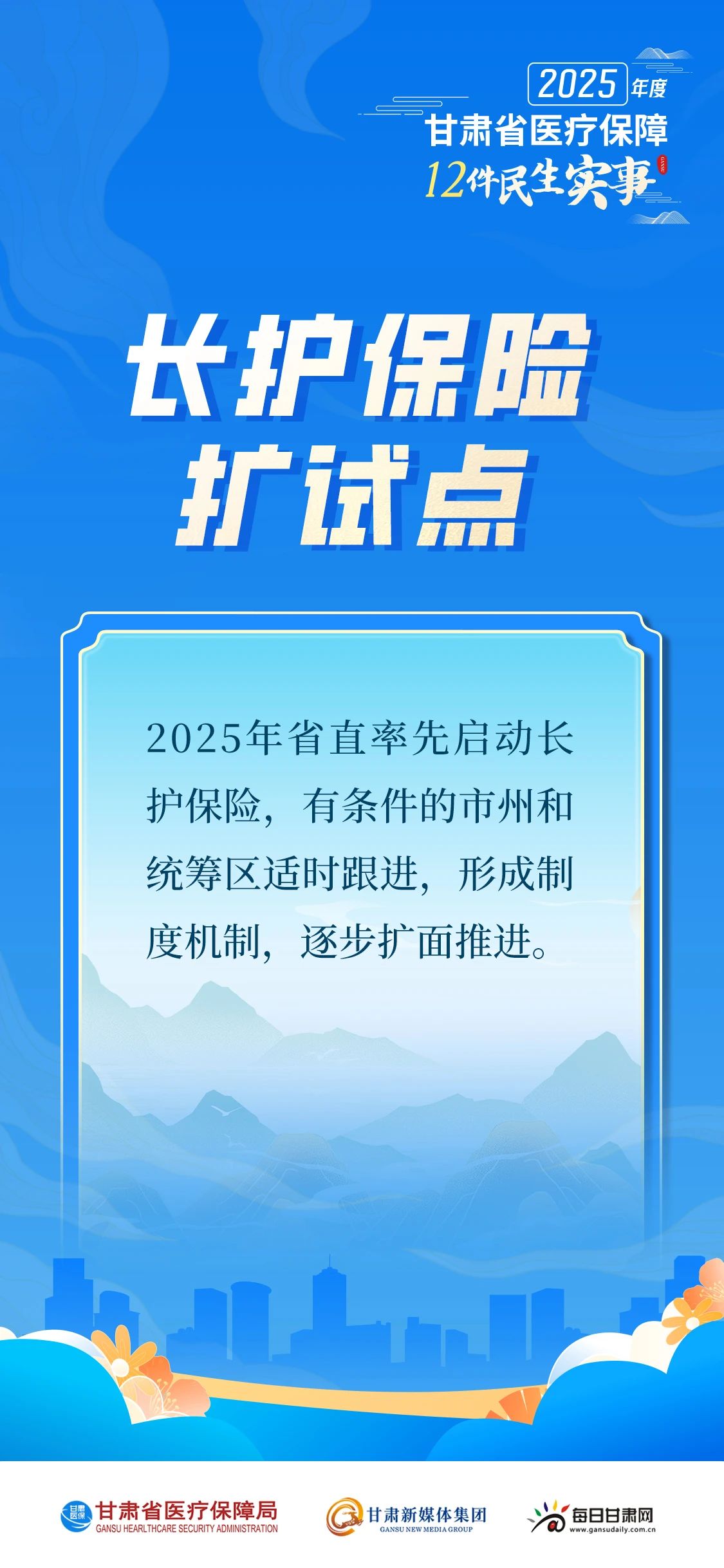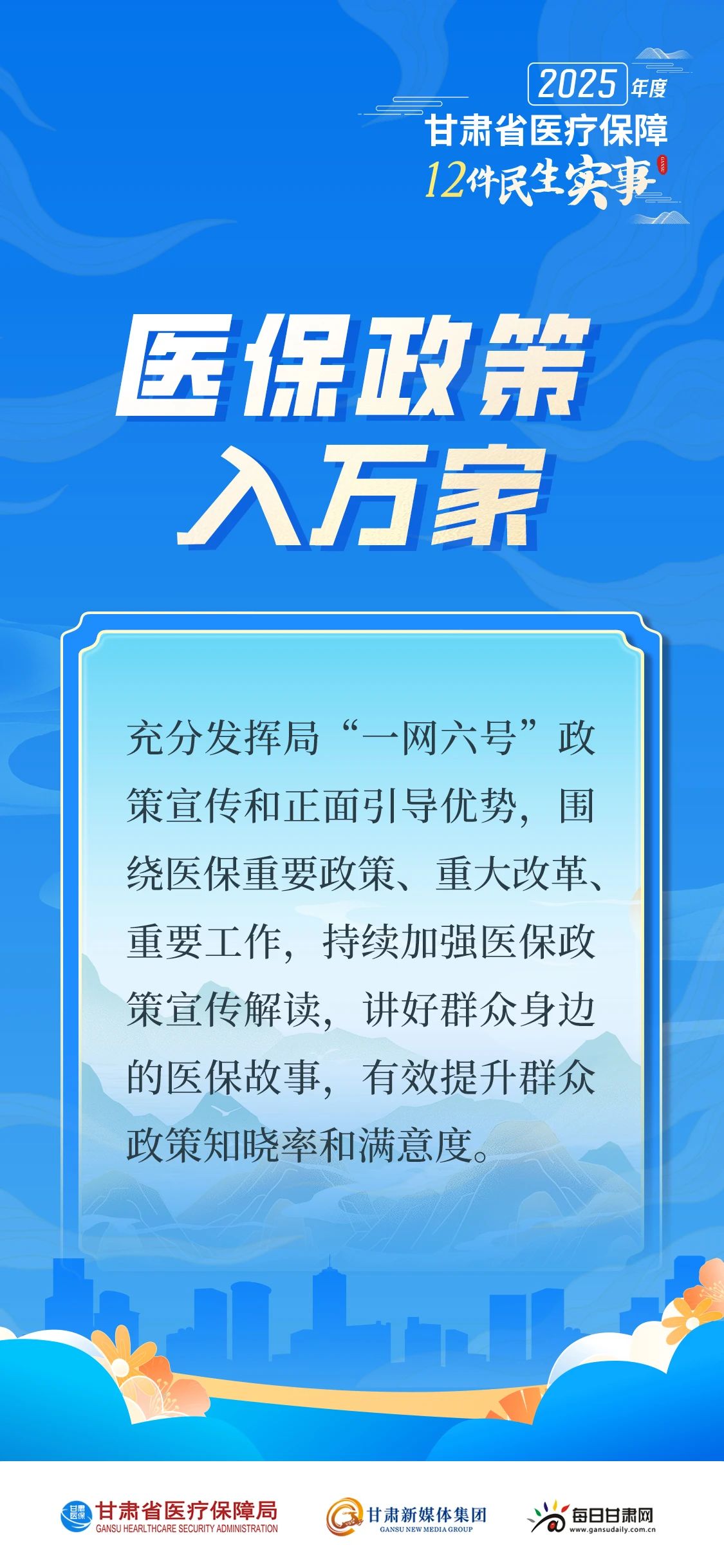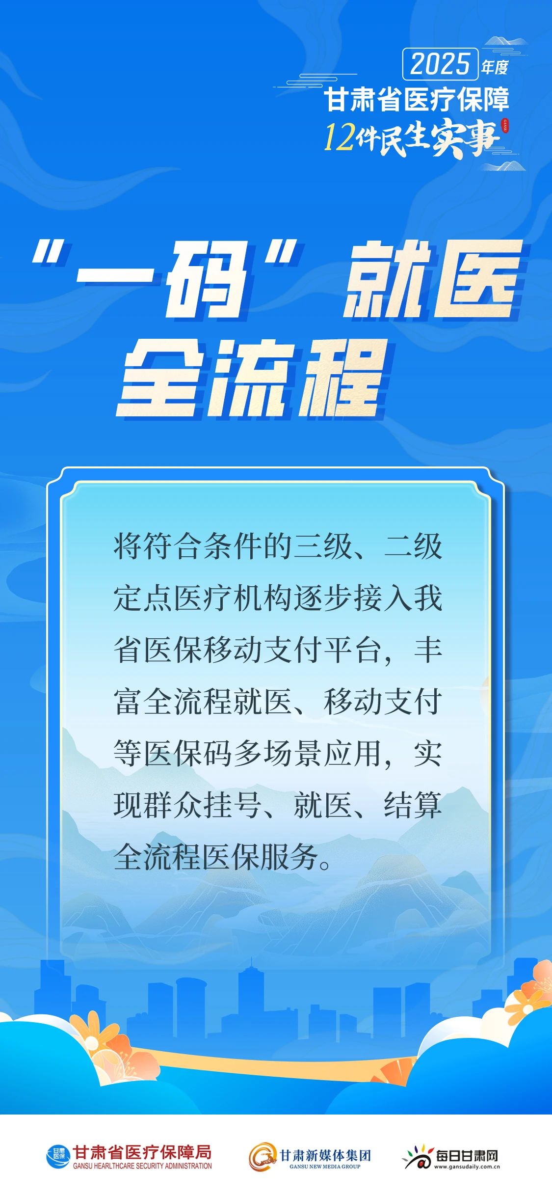 甘肃省医疗保障局推出2025年12件民生实事 发文日期:2025-03-12 15:06 来源:崇信县黄花乡 作者:梁俊龙 编辑:梁俊龙 扫一扫在手机打开当前页 上一篇: 黄花乡2025年1-3月份事实无人抚养儿童生活补助发放花名册 下一篇: 崇信县2025年度城乡居民基本医疗保险补充参保缴费政策告知书