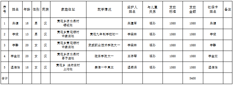 黄花乡2024年11月份孤儿生活补助发放花名册 发文日期:2024-11-04 14:03 来源:崇信县黄花乡 作者:梁俊龙 编辑:梁俊龙 扫一扫在手机打开当前页 上一篇: 我国将扩大基层医疗卫生机构慢性病、常见病用药种类 下一篇: 黄花乡2024年10月份孤儿生活补助发放花名册