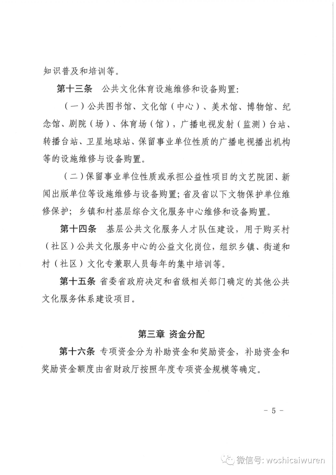 第十三条 公共文化体育设施维修和设备购置:(一)公共图书馆、文化馆(中心)、美术馆、博物馆、纪念馆、剧院(场)、体育场(馆),广播电视发射(监测)台站、转播台站、卫星地球站、保留事业单位性质的广播电视播出机构等的设施维修与设备购置。(二)保留事业单位性质或承担公益性项目的文艺院团、新闻出版单位等设施维修与设备购置;省及省以下文物保护单位维修保护;乡镇和村基层综合文化服务中心维修和设备购置。