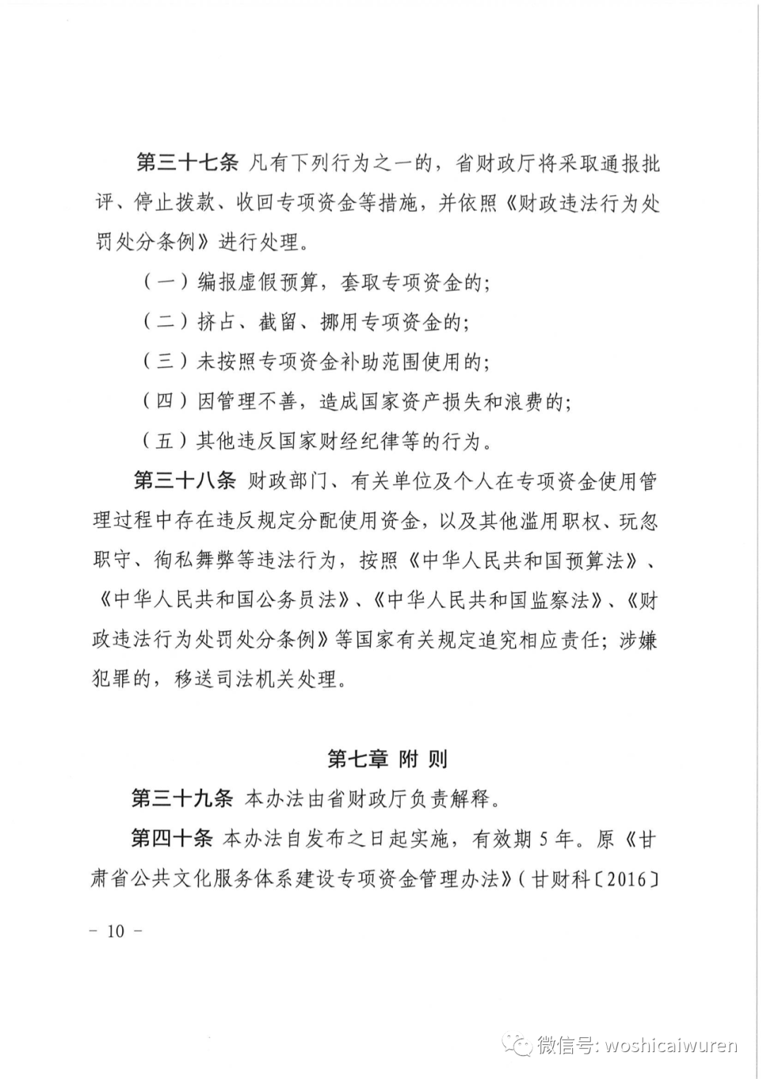 第三十九条 本办法由省财政厅负责解释。第四十条 本办法自发布之日起实施,有效期5年。原《甘肃省公共文化服务体系建设专项资金管理办法》(甘财科〔2016〕14号)同时废止。