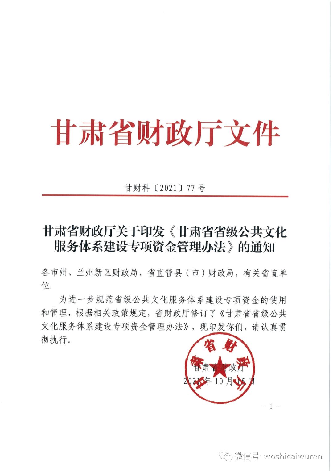 第一条 为规范和加强甘肃省省级公共文化服务体系建设专项资金(以下简称专项资金)管理,提高专项资金使用效益,根据省委办公厅、省政府办公厅《关于加快构建现代公共文化服务体系的实施意见》(甘办发〔2015〕37号)和《甘肃省公共文化领域省与市县财政事权和支出责任划分改革方案》(甘政办发〔2020〕106号)等有关规定,参照财政部《中央补助地方公共文化服务体系建设专项资金管理暂行办法》(财教〔2015〕527号),制定本办法。