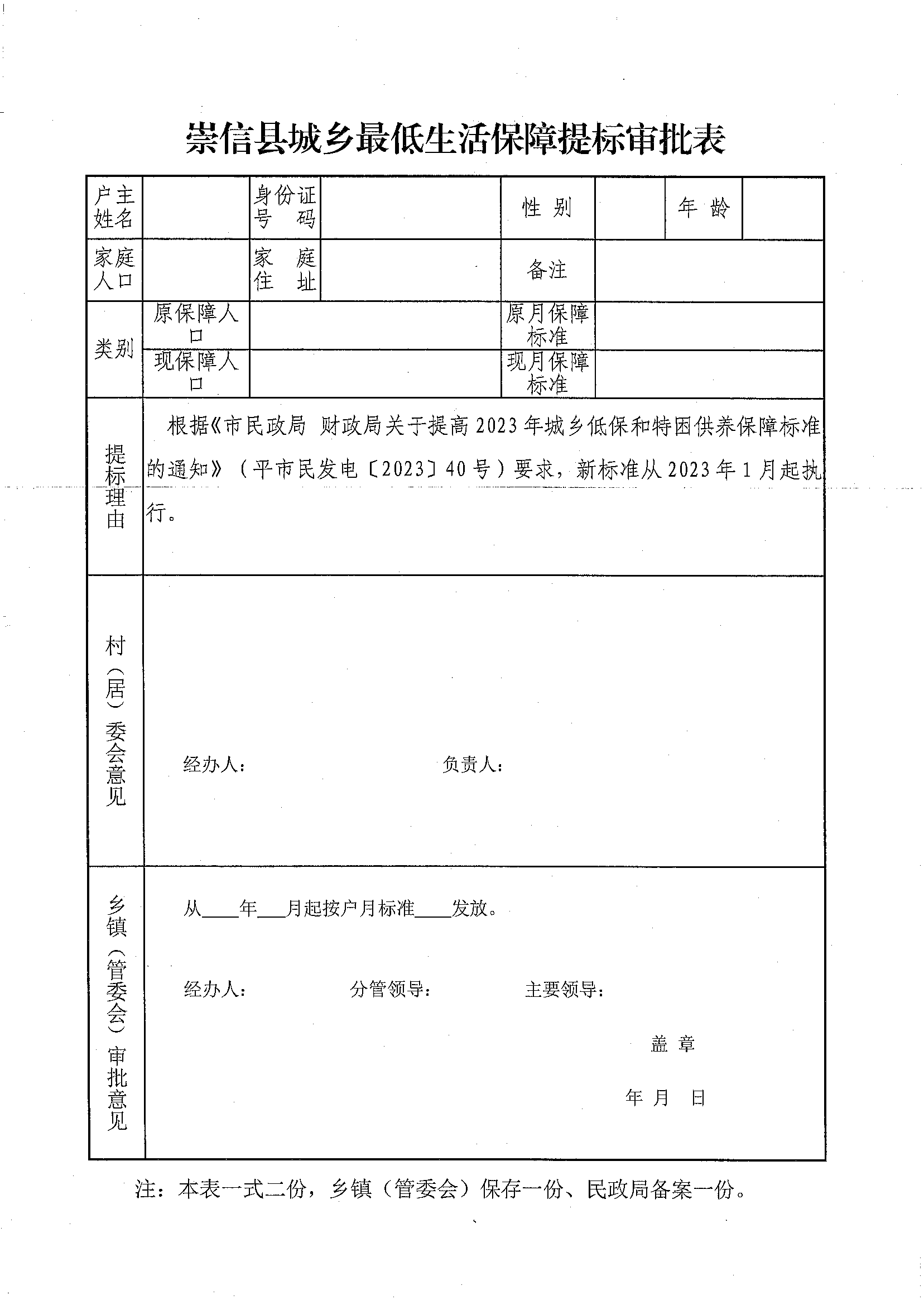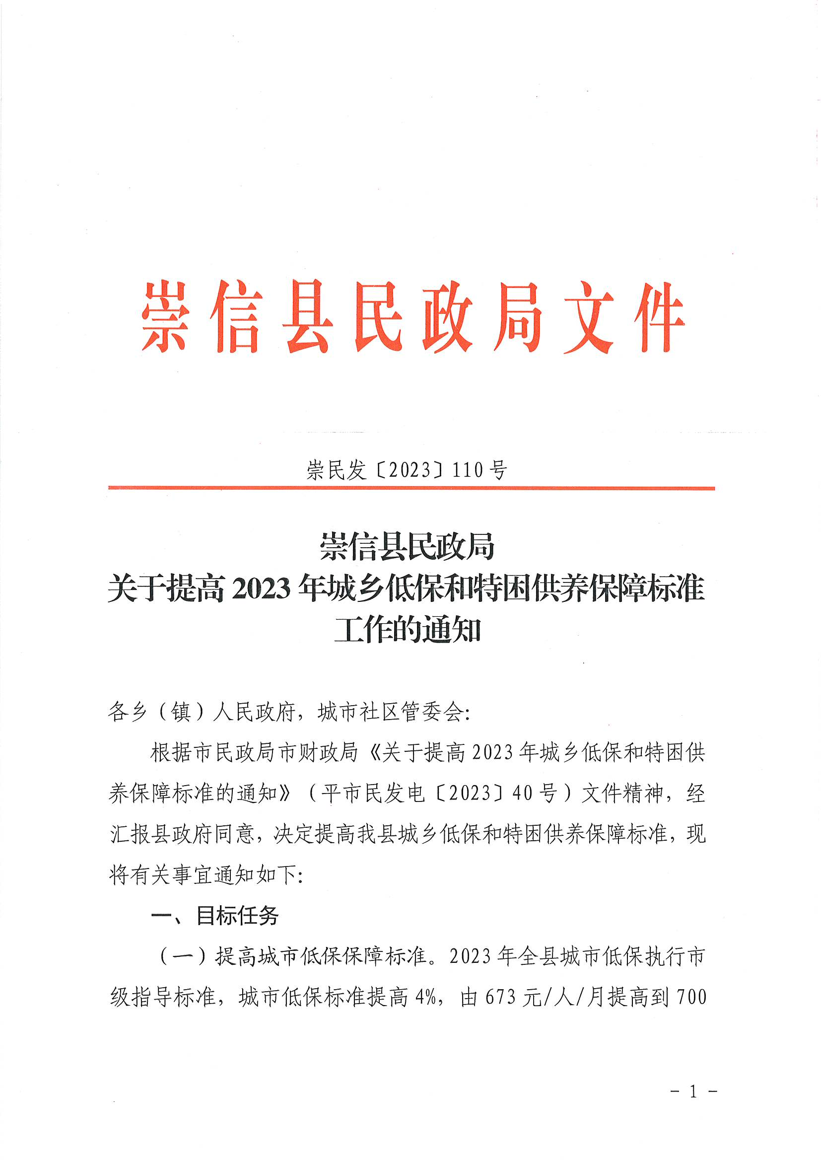 关于提高2023年城乡低保和特困人员救助供养标准工作的通知 发文日期:2023-04-26 12:34 来源:崇信县锦屏镇 作者:秦雅芸 编辑:秦雅芸 扫一扫在手机打开当前页 上一篇: 锦屏镇2023年5月份农村低保资金发放花名册 下一篇: 关于调整全县城乡居民基本养老保险缴费档次的通知[ 1 ]