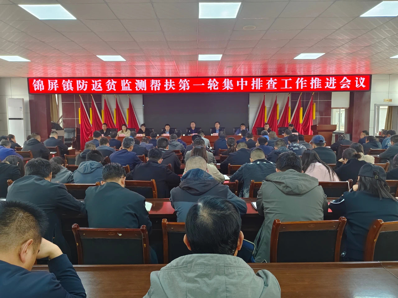 4月2日,锦屏镇防返贫监测帮扶第一轮集中排查工作推进会议召开。全体科级领导、干部职工、26村党支部书记,村委会主任、驻村工作队成员共计160余人参加会议。
