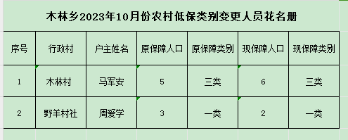 根据《崇信县最低生活保障审核确认实施细则》规定,木林乡人民政府对2023年10月份农村低保动态调整情况予以公示,公示接受各方监督,如有异议和不实情况,请及时向木林乡人民政府反映,我们将及时受理并调查处理。