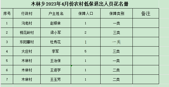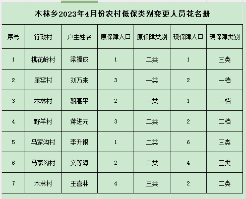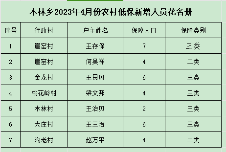 根据《崇信县最低生活保障审核确认实施细则》规定,木林乡人民政府对2023年4月份农村低保动态调整情况予以公示,公示接受各方监督,如有异议和不实情况,请及时向木林乡人民政府反映,我们将及时受理并调查处理。