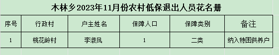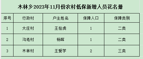 根据《崇信县最低生活保障审核确认实施细则》规定,木林乡人民政府对2023年11月份农村低保动态调整情况予以公示,公示接受各方监督,如有异议和不实情况,请及时向木林乡人民政府反映,我们将及时受理并调查处理。