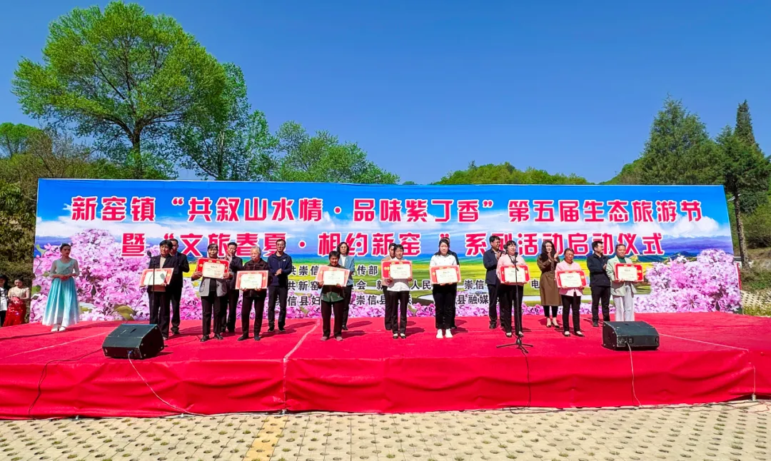 为全面贯彻落实党的二十大精神和省委“三抓三促”行动,充分展现新窑镇独特的乡村旅游资源和全新的绿色发展之路、产业强镇之路,推动乡村旅游事业高质量发展。4月25日,新窑镇“共叙山水情·品味紫丁香”第五届生态旅游节暨“文旅春夏·相约新窑 ”系列活动启动仪式在新窑村后河沟拉开帷幕。县委常委、宣传部部长莫雅君出席仪式并宣布活动启动,县人大常委会副主任陈明玉,县政协副主席赵瑛参加仪式。