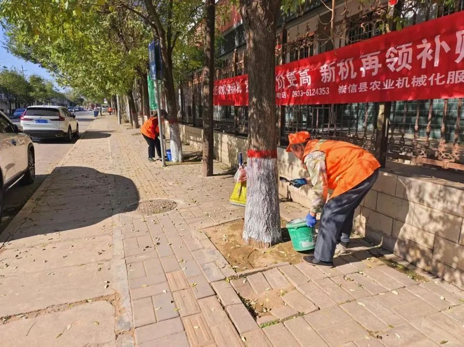 管护过程中,各村积极组织村社干部、公益岗,对道路沿线和村庄道路两边行道树开展涂白管护工作,确保管护地域、管护措施、管护树种“全覆盖”。涂白时大家严格按照涂白要求,精心配比涂白剂、反复涂刷树干、及时清理树下落白,有条不紊的对每一棵行道树进行“呵护”,并在基准线处刷上一圈红腰带,确保做到止口平整,高度一致,涂白均匀。在做好行道树涂白工作的同时,各村还对沿路主干道两旁的杂草、落叶、垃圾等杂物进行了全面清理,对枯树枝进行了修剪,使全镇沿路沿线成为一道亮丽的风景线。