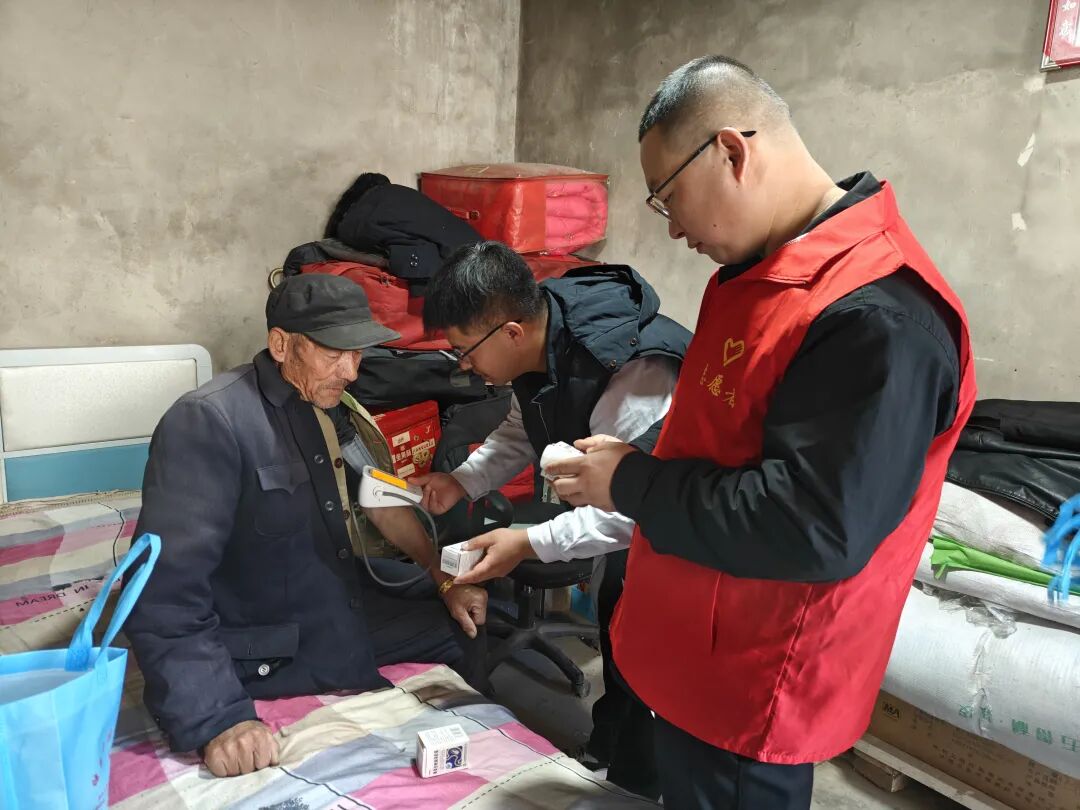 聚餐过后,4名医护人员有序开展义诊服务,耐心为老人们测量血压、血糖,细致解答高血压、关节炎等常见老年病的预防与护理问题,还为行动不便的老人上门问诊,手把手教他们正确用药。