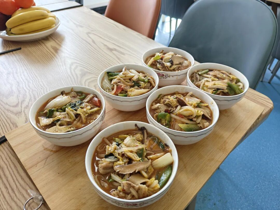 活动现场暖意融融,集体聚餐率先拉开帷幕。志愿服务人员提前布置好餐桌,精心准备了软烂可口的饭菜,老人们围坐在一起,一边品尝美食,一边拉着家常,谈笑声交织,满是团圆的温馨。