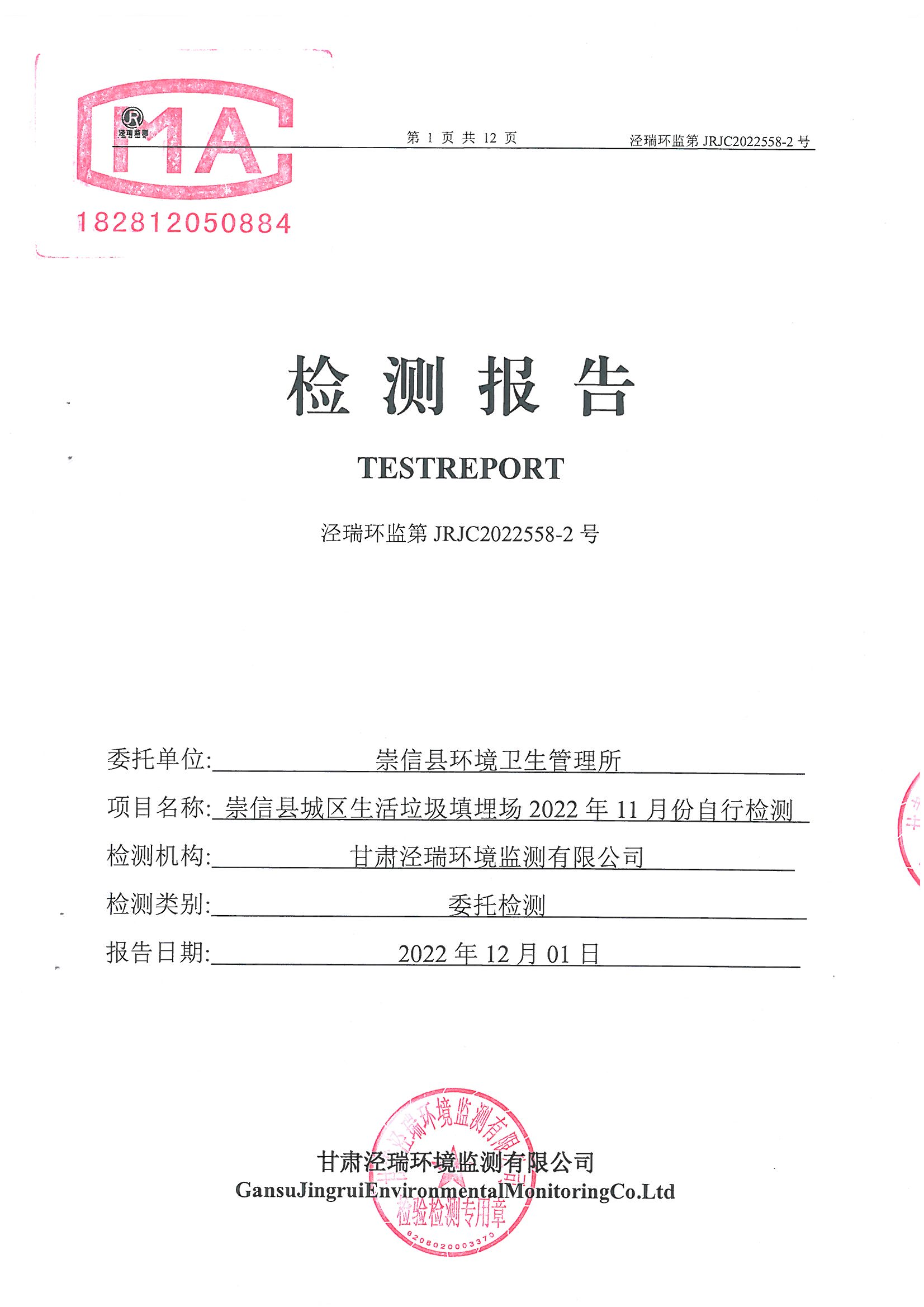 崇信县城区生活垃圾填埋场2022年11月份检测报告 发文日期:2022-12-08 17:43 来源:崇信县人民政府 作者:陈腾 编辑:陈腾 扫一扫在手机打开当前页 上一篇: 崇信县城区生活垃圾填埋场2022年12月份检测报告 下一篇: 崇信县城区生活垃圾填埋场2022年10月份检测报告