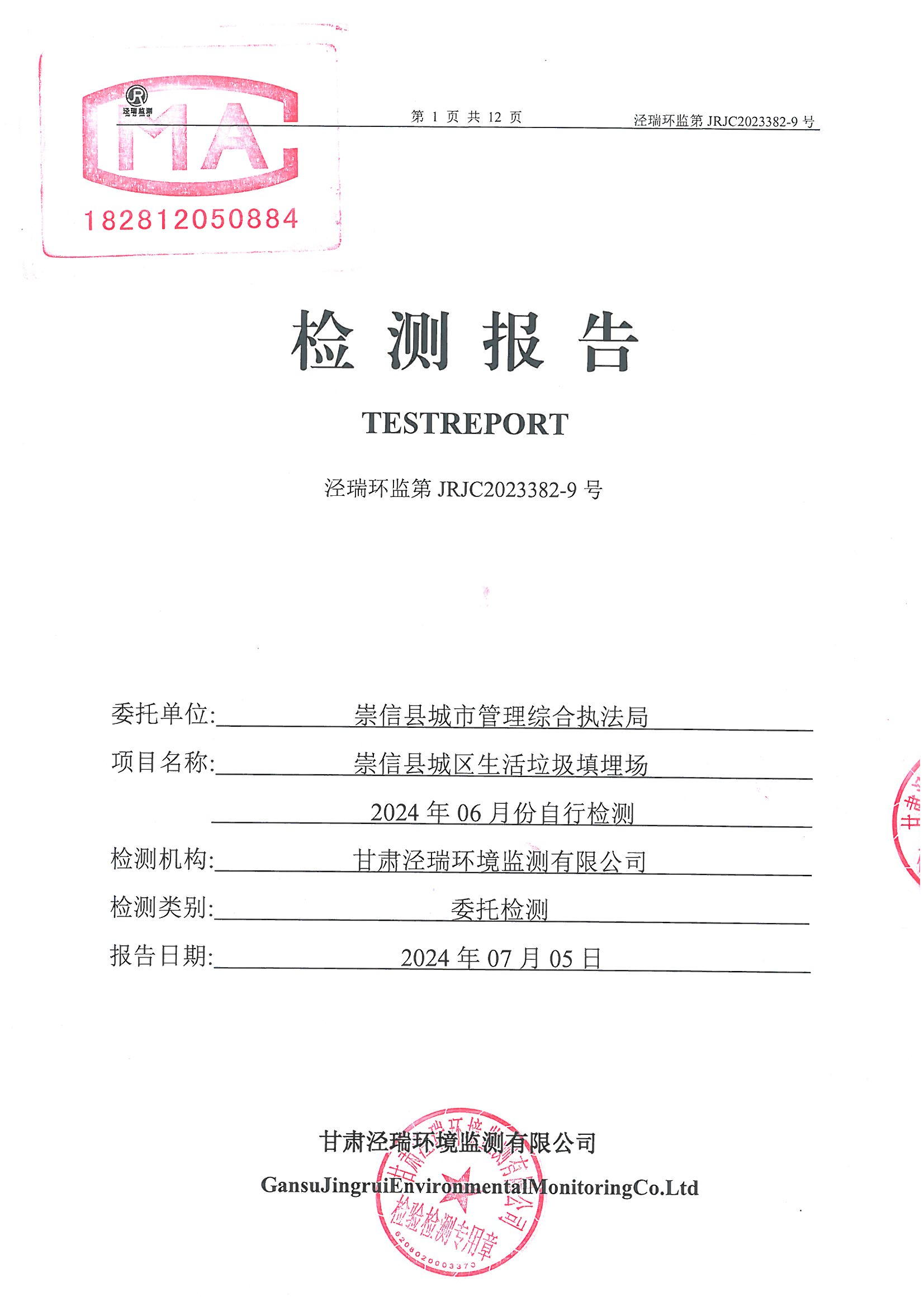崇信县城区生活垃圾填埋场2024年06月份监测报告 发文日期:2024-07-12 15:08 来源:崇信县城市管理综合执法局 作者:崇信县城市管理综合执法局 编辑:袁婕 扫一扫在手机打开当前页 上一篇: 2024年1月崇信县环境质量监测结果 下一篇: 崇信县城区生活垃圾填埋场2024年05月份监测报告