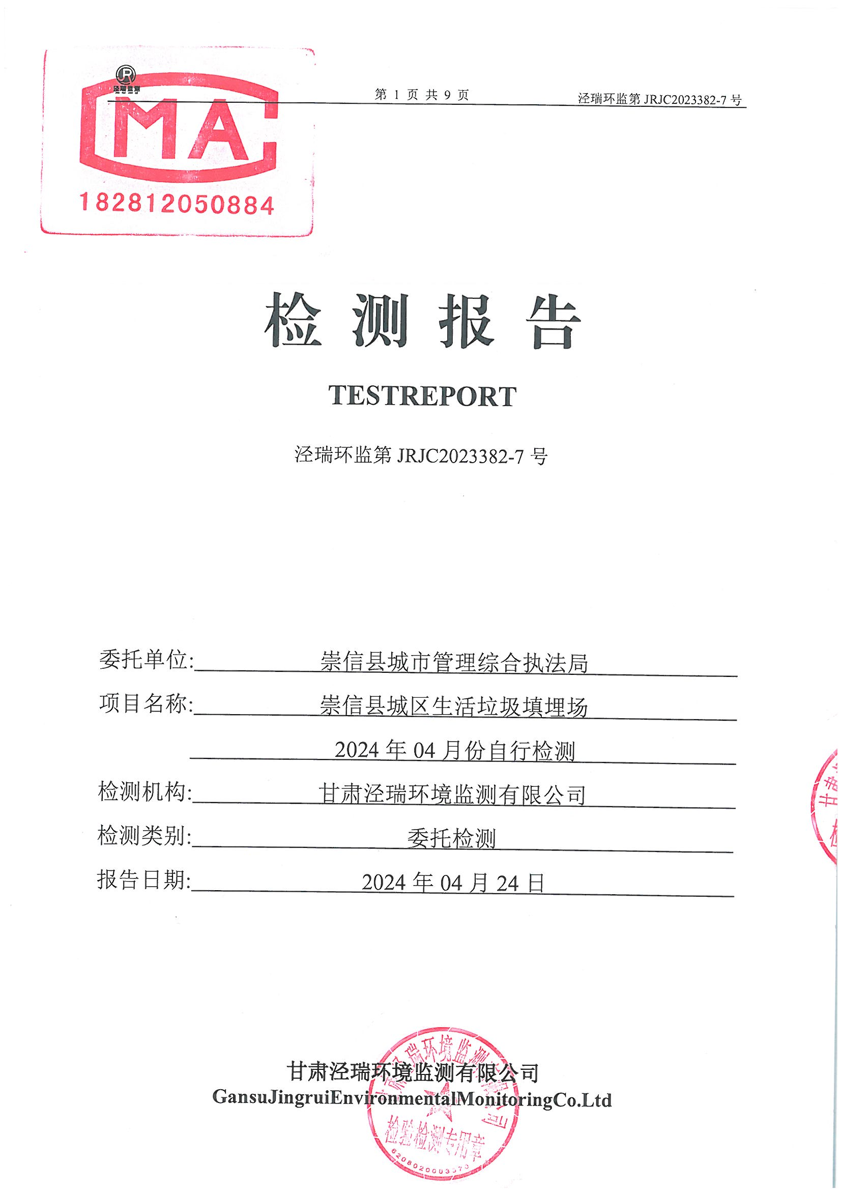 崇信县城区生活垃圾填埋场2024年04月份监测报告 发文日期:2024-04-24 14:45 来源:崇信县城市管理综合执法局 作者:崇信县城市管理综合执法局 编辑:袁婕 扫一扫在手机打开当前页 上一篇: 崇信县城区生活垃圾填埋场2024年05月份监测报告 下一篇: 崇信县城区生活垃圾填埋场2024年03月份监测报告