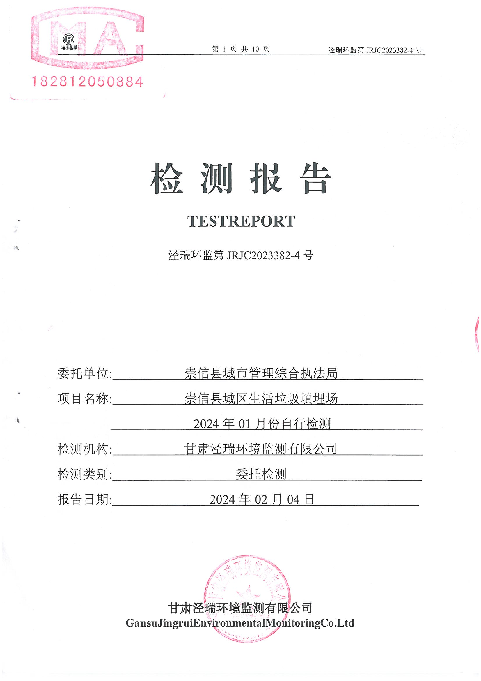崇信县城区生活垃圾填埋场2024年01月份检测报告 发文日期:2024-02-27 14:37 来源:崇信县城市管理综合执法局 作者:崇信县城市管理综合执法局 编辑:袁婕 扫一扫在手机打开当前页 上一篇: 崇信县城区生活垃圾填埋场2024年02月份监测报告 下一篇: 崇信县城区生活垃圾填埋场2023年12月份检测报告