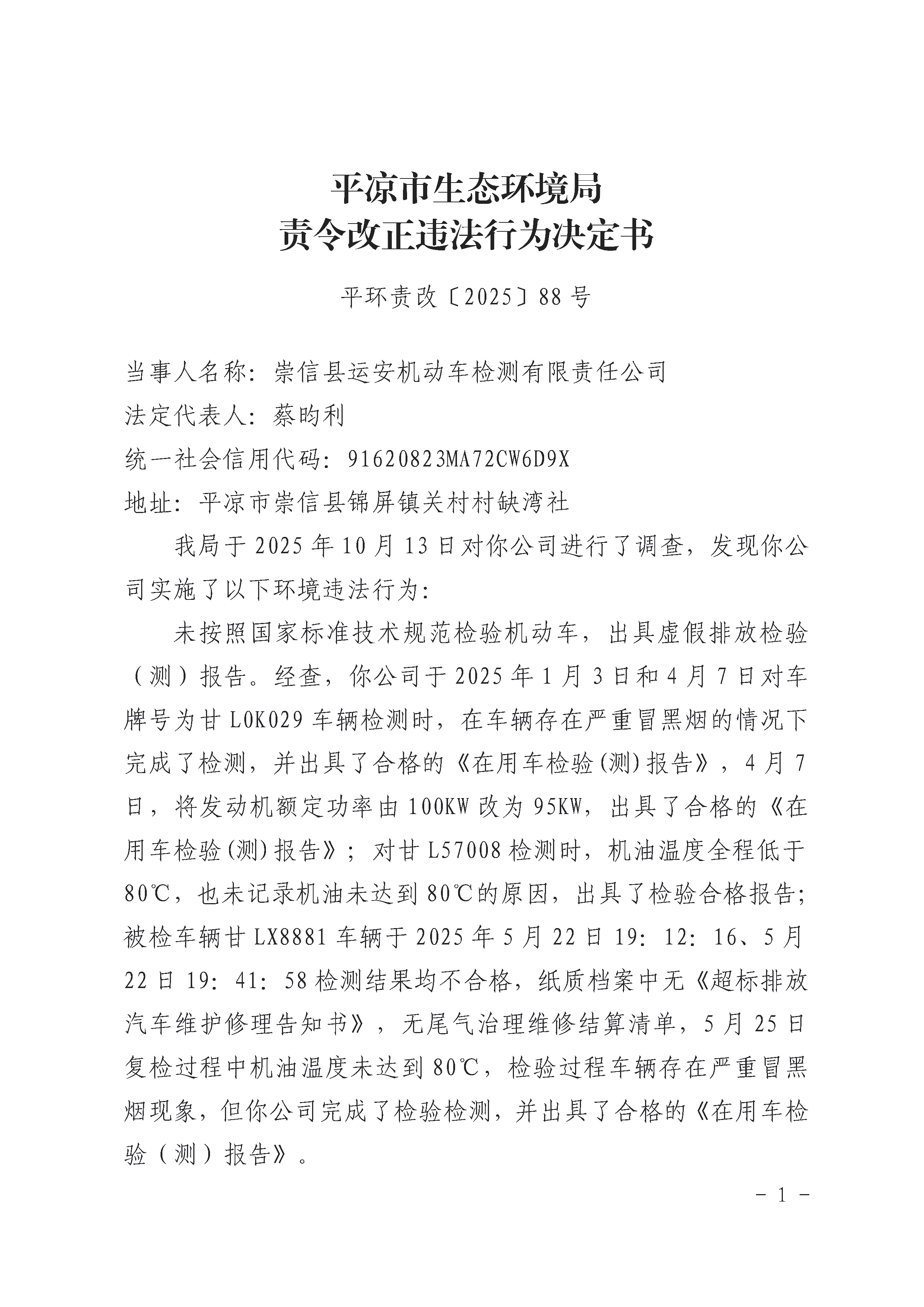 平环责改〔2025〕88号 发文日期:2025-10-14 09:19 来源:平凉市生态环境局崇信分局 作者:白斌 编辑:白斌 扫一扫在手机打开当前页 上一篇: 平凉市生态环境局崇信分局2025年10月份“双随机、一公开”监管抽查结果公示 下一篇: 平环(崇)责改〔2025〕56号