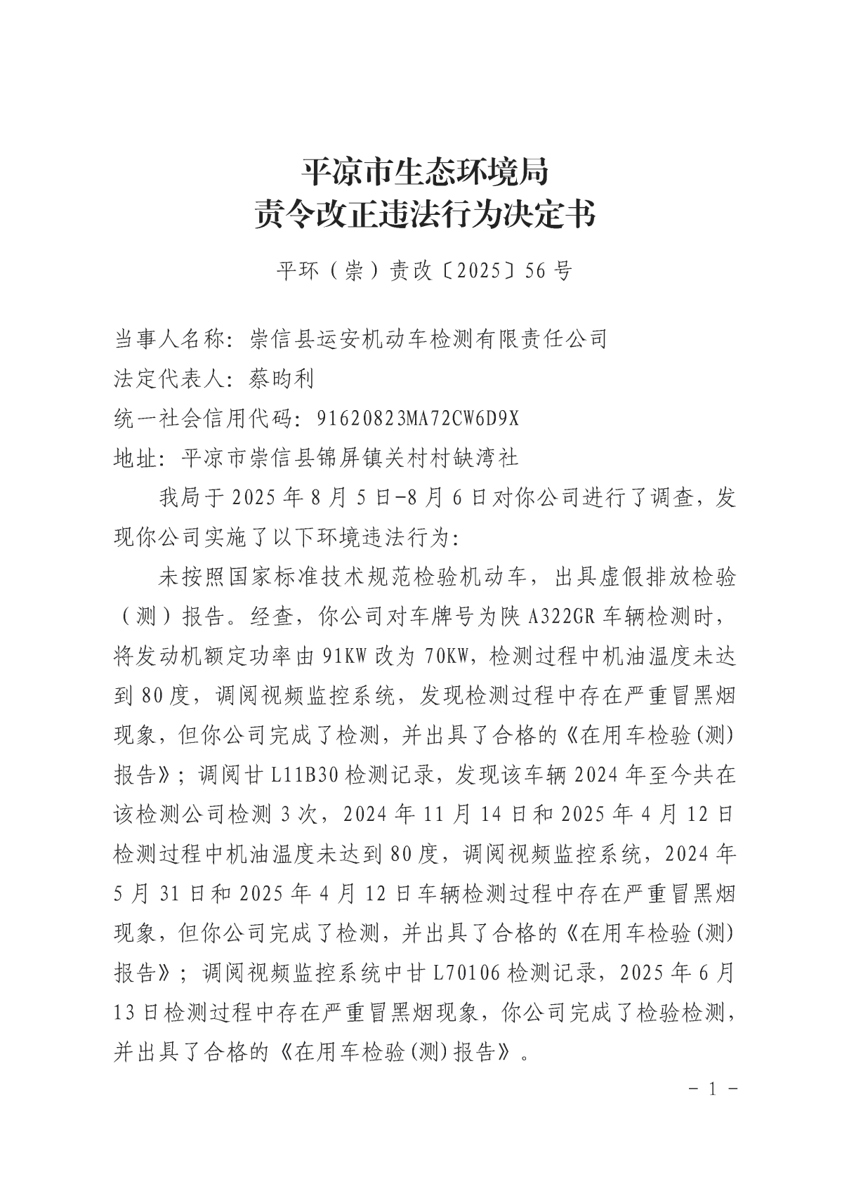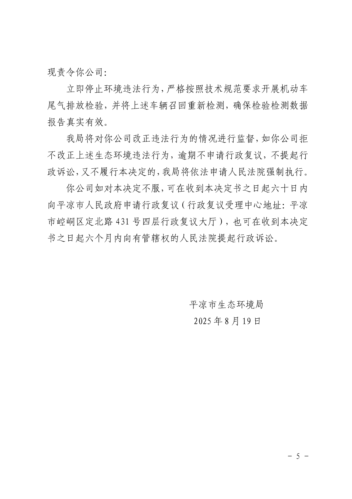 平环(崇)责改〔2025〕56号 发文日期:2025-08-20 09:16 来源:平凉市生态环境局崇信分局 作者:白斌 编辑:白斌 扫一扫在手机打开当前页 上一篇: 平环责改〔2025〕88号 下一篇: 平环责改〔2025〕76号
