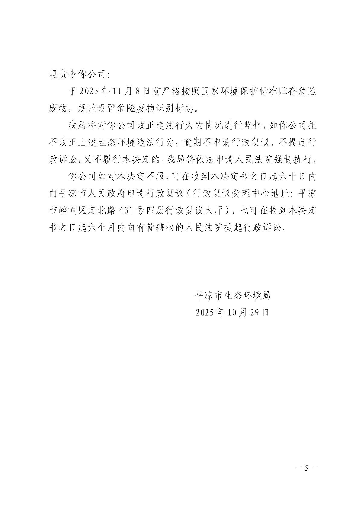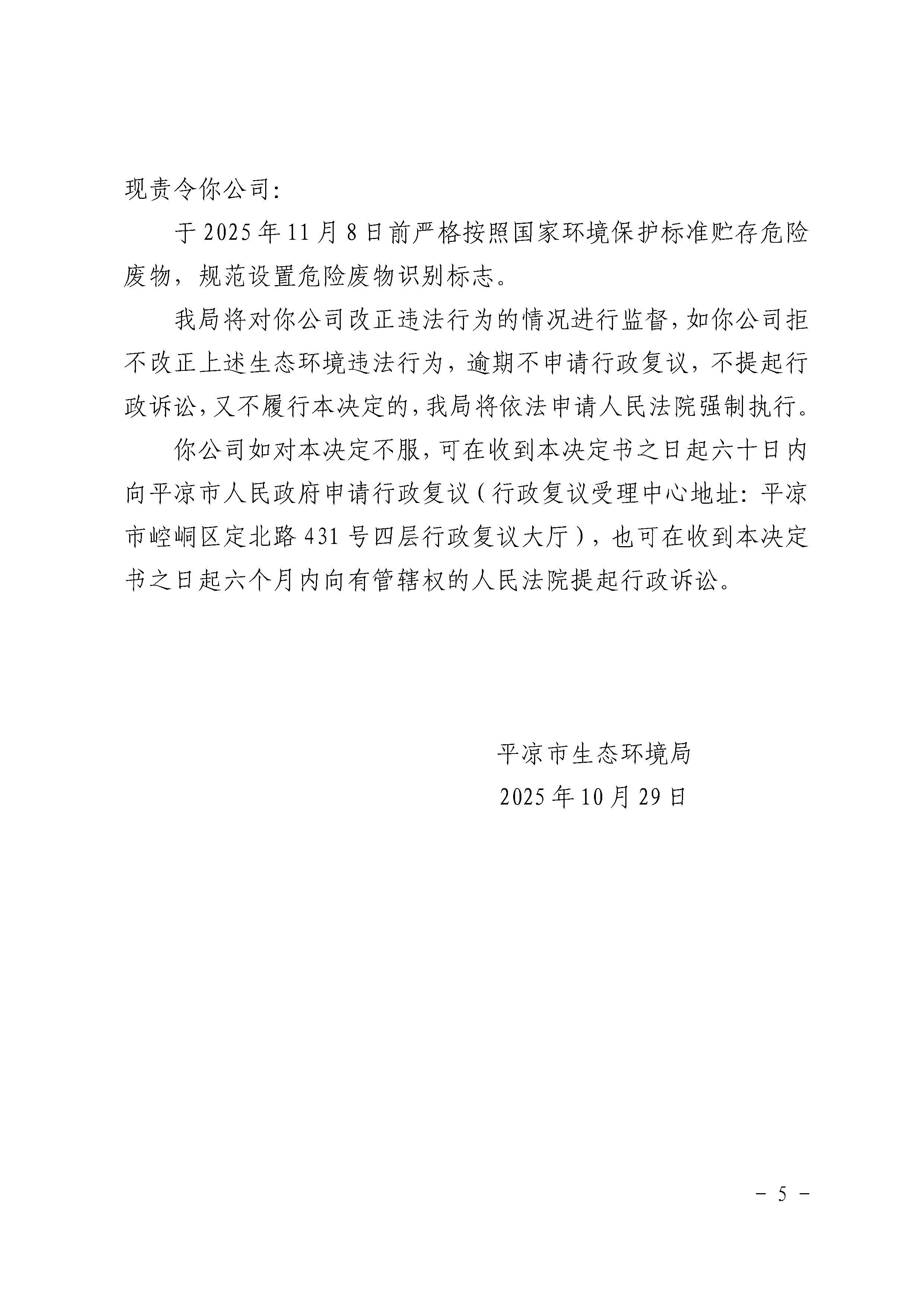 平环责改〔2025〕97号 发文日期:2025-10-30 18:54 来源:平凉市生态环境局崇信分局 作者:平凉市生态环境局崇信分局 编辑:白斌 扫一扫在手机打开当前页 上一篇: 平凉市生态环境局崇信分局2025年12月份“双随机、一公开”监管抽查结果公示 下一篇: 平凉市生态环境局崇信分局2025年12月份双随机检查任务公示