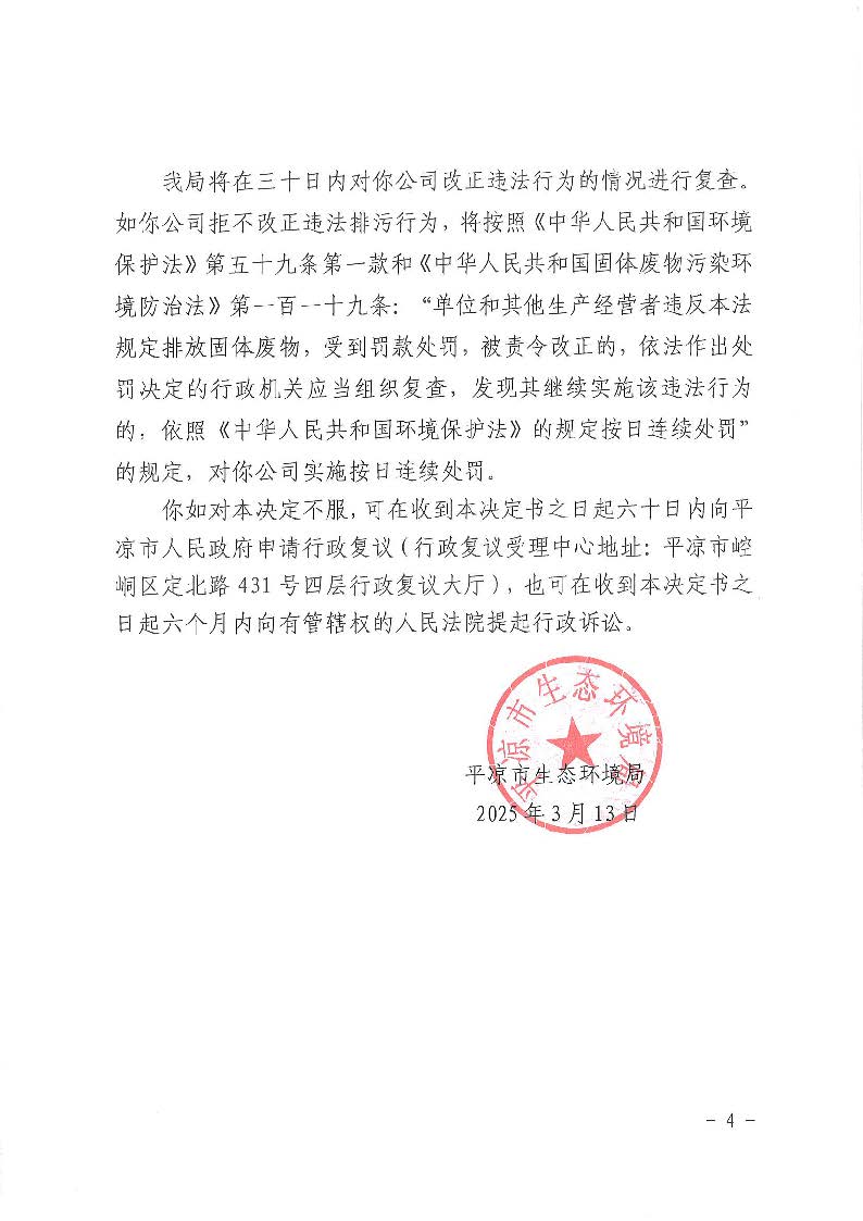 平环(崇)责改〔2025〕 9号 发文日期:2025-03-14 15:47 来源:平凉市生态环境局崇信分局 作者:平凉市生态环境局崇信分局 编辑:白斌 扫一扫在手机打开当前页 上一篇: 平凉市生态环境局崇信分局2025年4月份“双随机、一公开”监管抽查结果公示 下一篇: 平凉市生态环境局崇信分局2025年4月份双随机检查任务公示