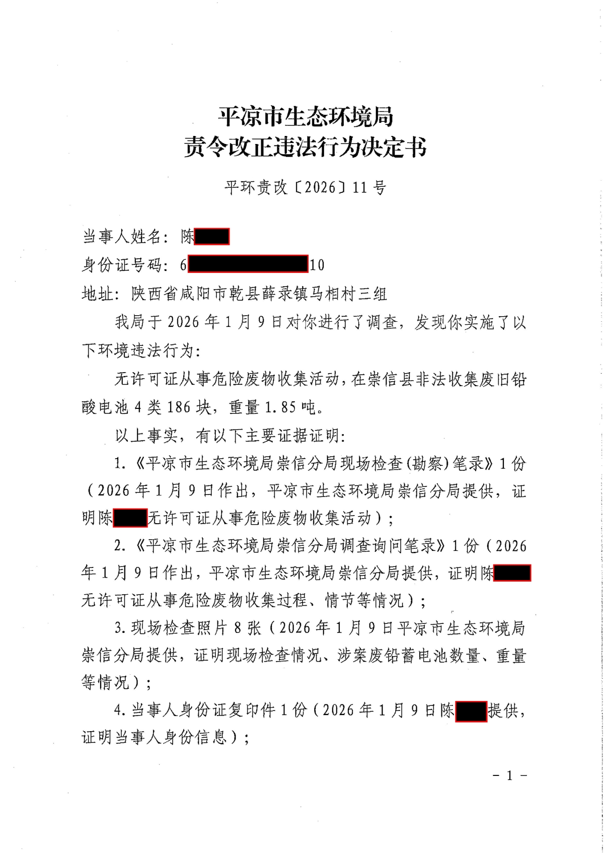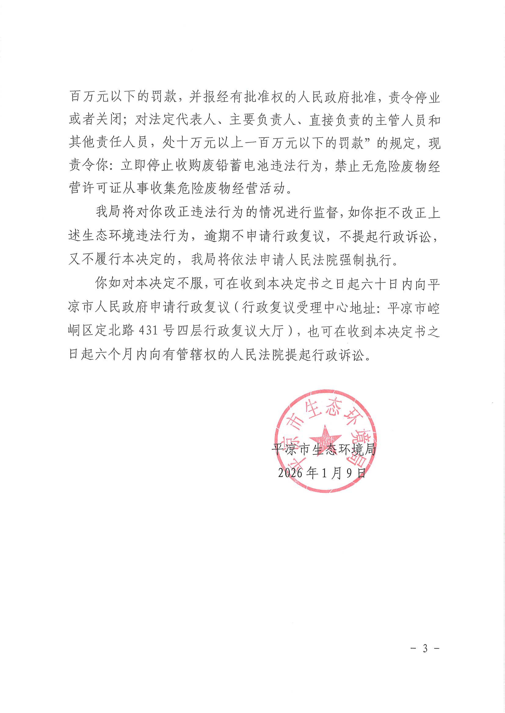 平环责改〔2026〕11号 发文日期:2026-01-12 20:37 来源:平凉市生态环境局崇信分局 作者:平凉市生态环境局崇信分局 编辑:白斌 扫一扫在手机打开当前页 上一篇: 平凉市生态环境局崇信分局2026年3月份“双随机、一公开”监管抽查结果公示 下一篇: 平凉市生态环境局崇信分局2026年3月份双随机检查任务公示