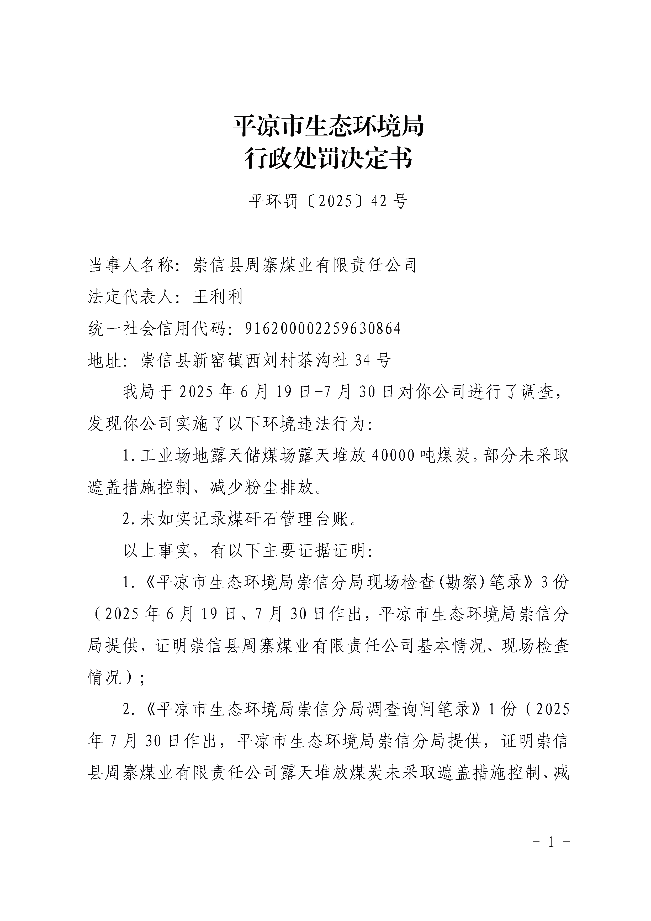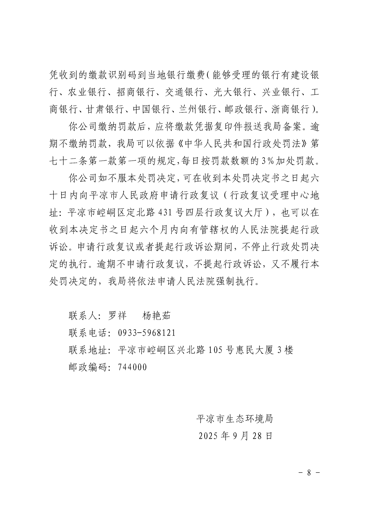 平环罚〔2025〕42号 发文日期:2025-09-28 19:47 来源:平凉市生态环境局崇信分局 作者:白斌 编辑:白斌 扫一扫在手机打开当前页 上一篇: 平环罚〔2025〕47号 下一篇: 平环不罚〔2025〕5号