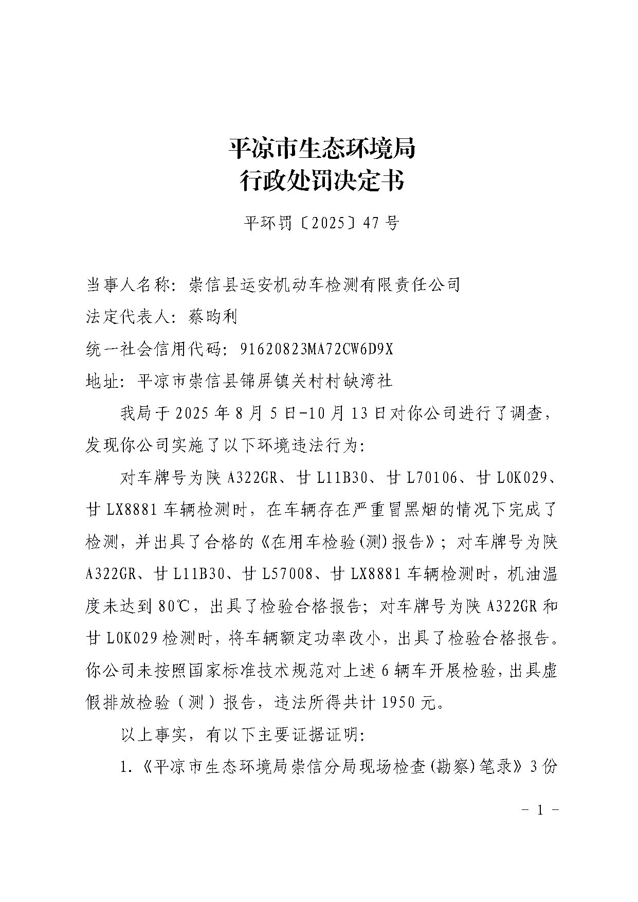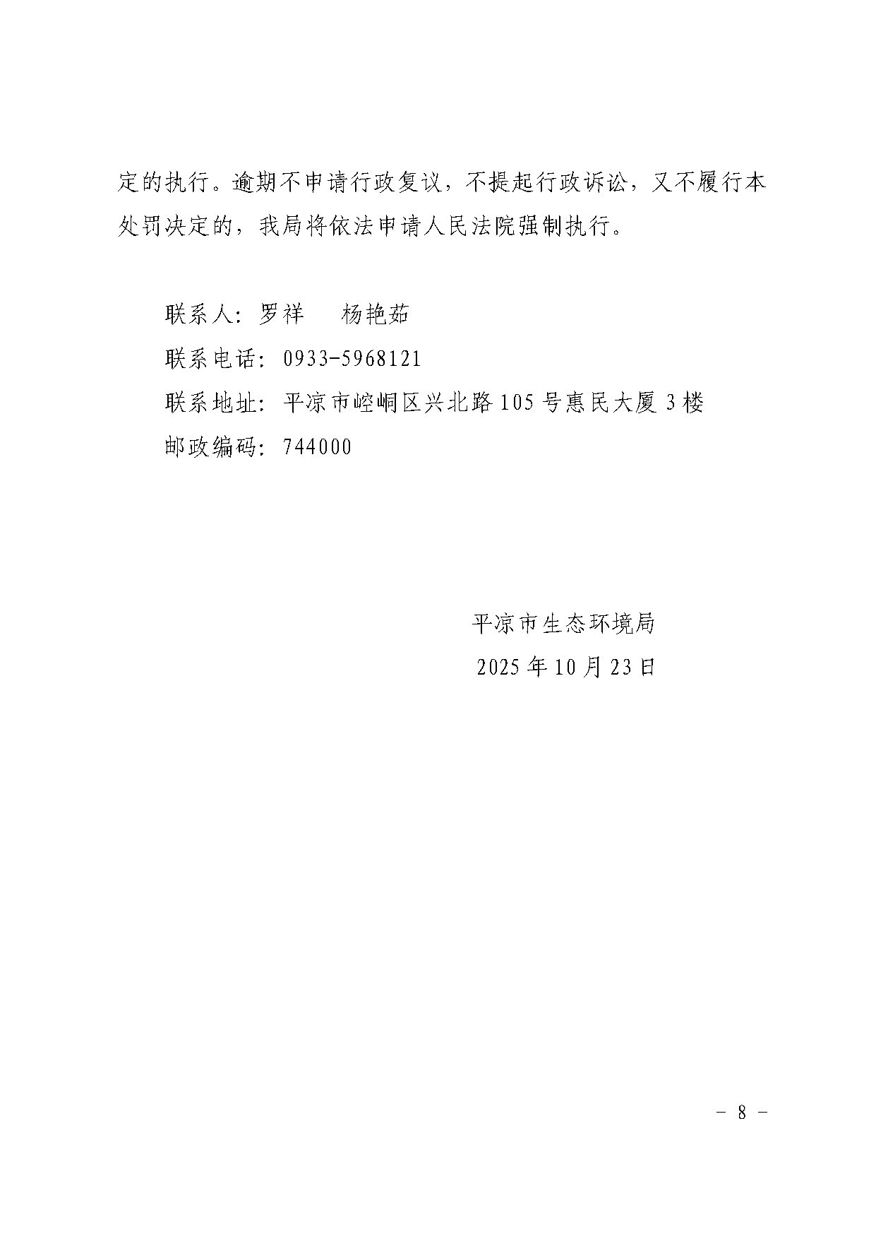 平环罚〔2025〕47号 发文日期:2025-10-24 09:21 来源:平凉市生态环境局崇信分局 作者:白斌 编辑:白斌 扫一扫在手机打开当前页 上一篇: 平环罚〔2025〕48号 下一篇: 平环罚〔2025〕42号