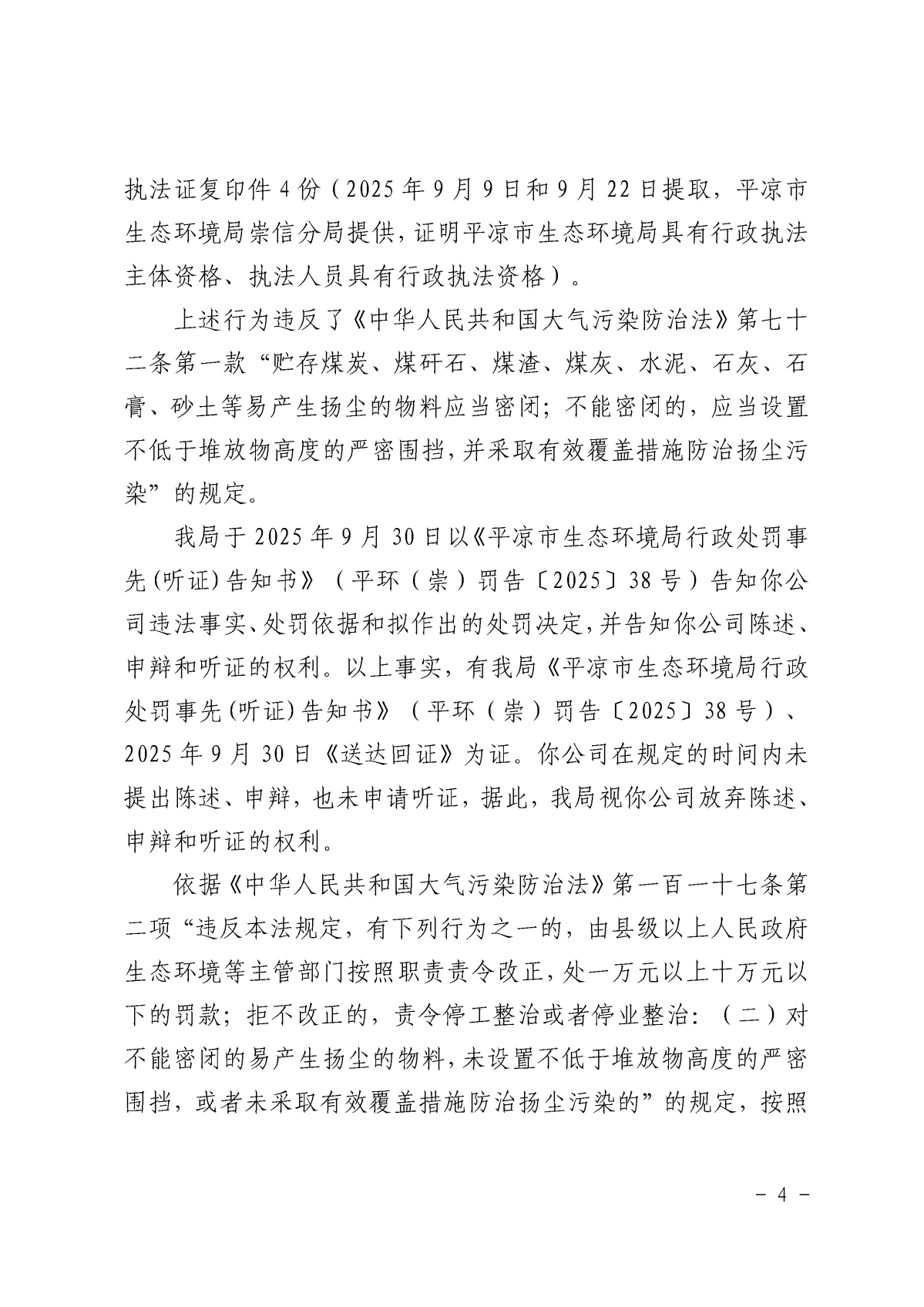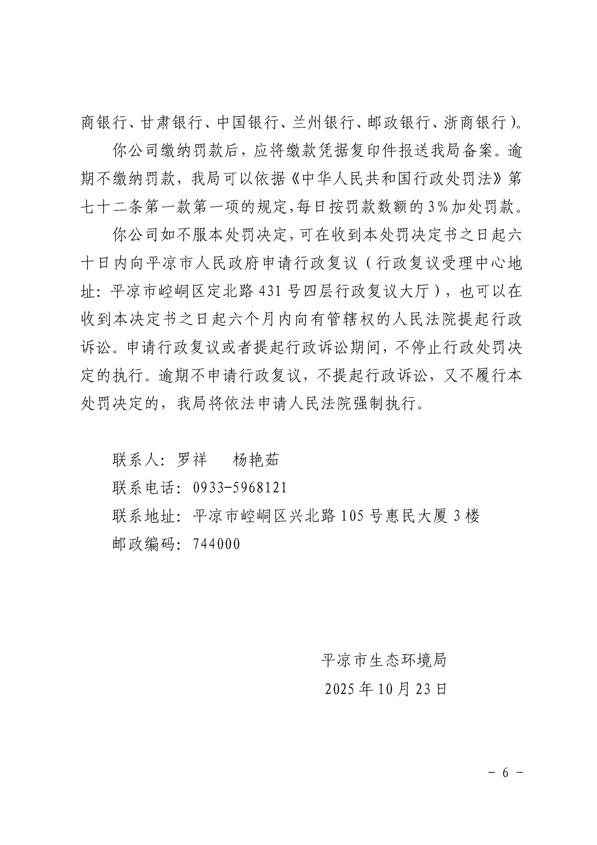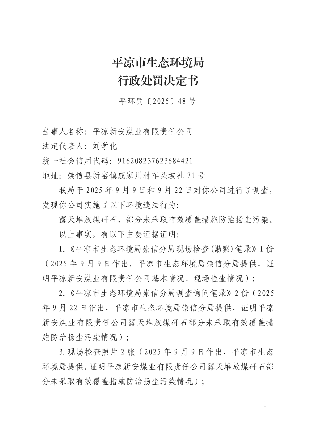 平环罚〔2025〕48号 发文日期:2025-10-24 09:22 来源:平凉市生态环境局崇信分局 作者:白斌 编辑:白斌 扫一扫在手机打开当前页 上一篇: 平环罚〔2025〕56号 下一篇: 平环罚〔2025〕47号