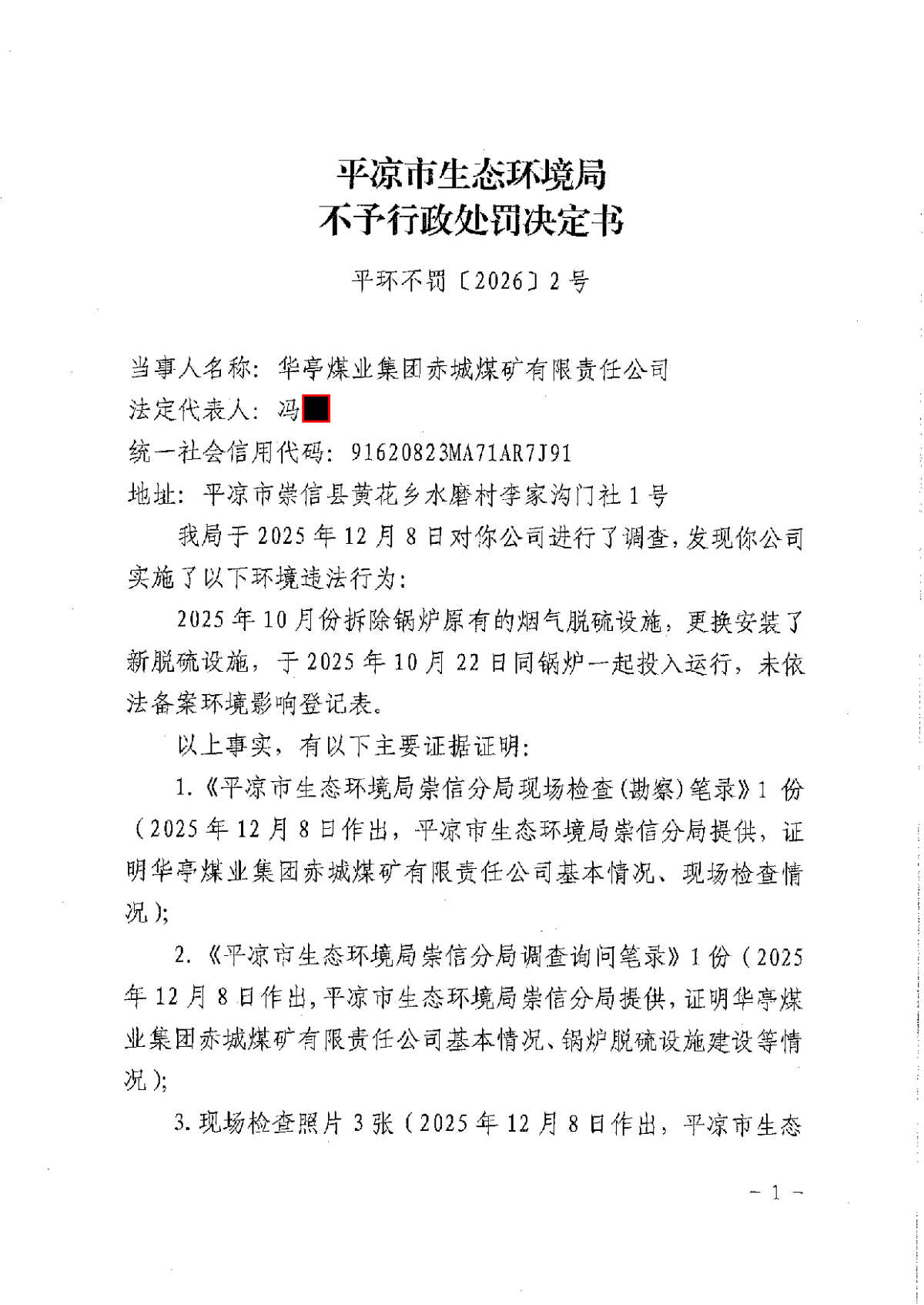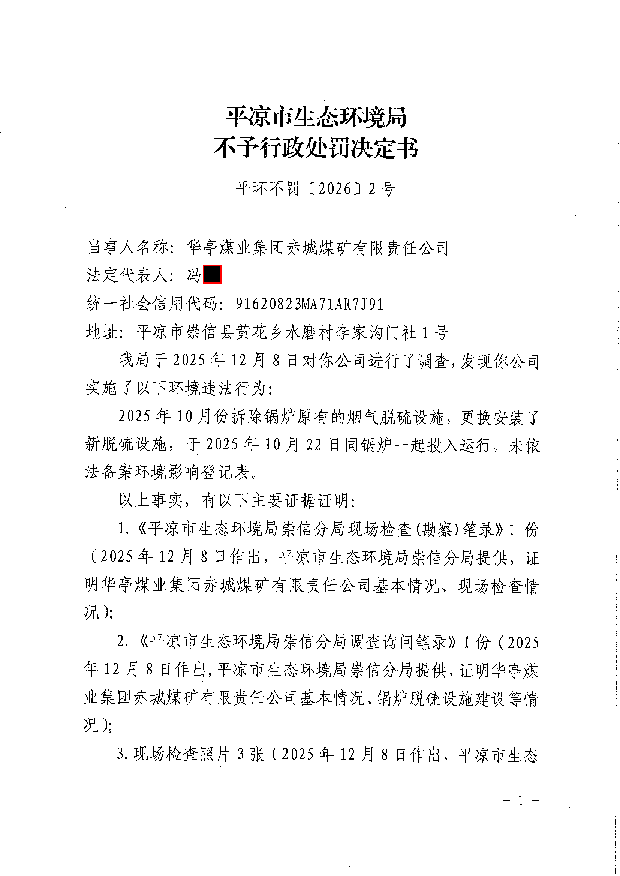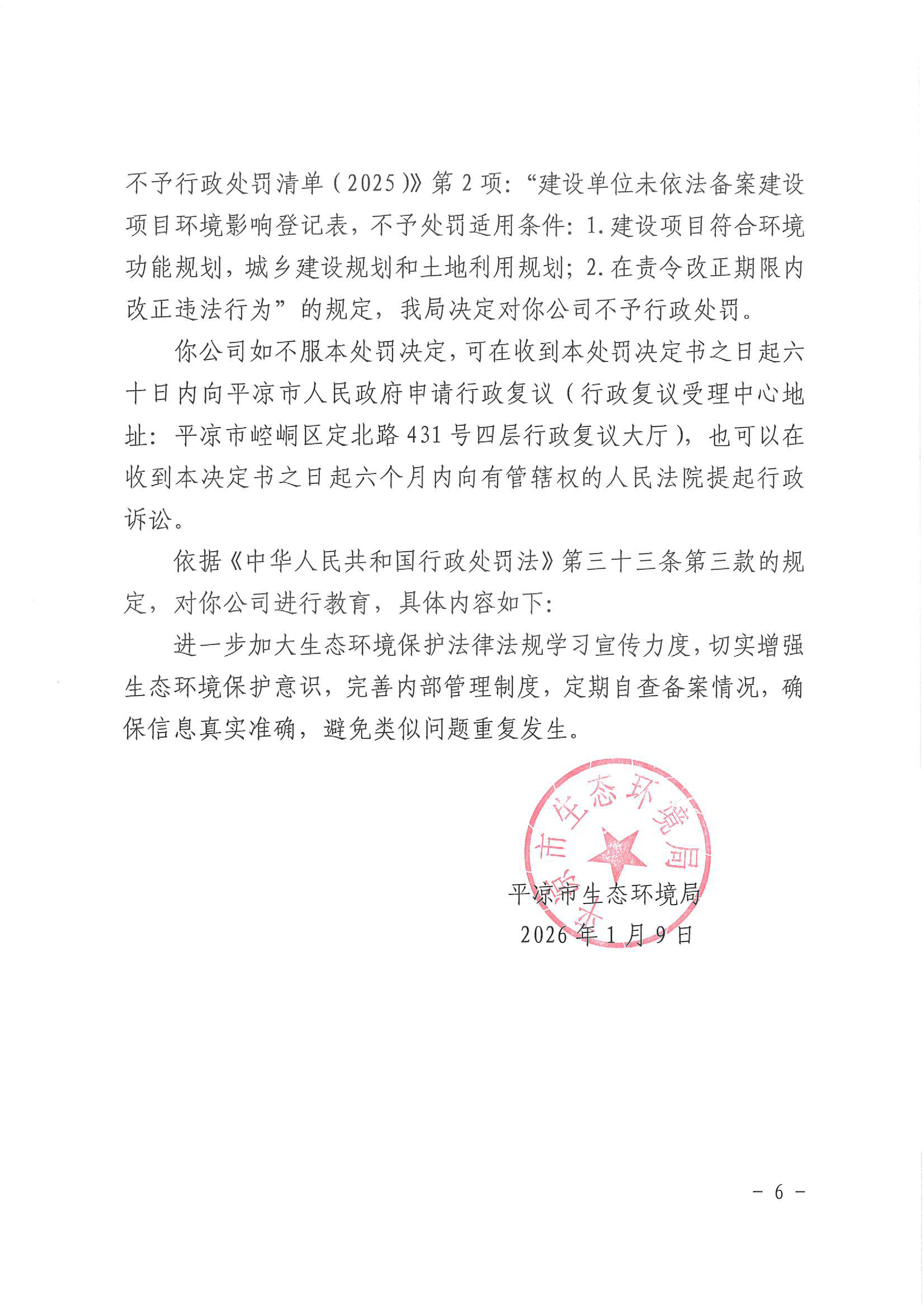 平环不罚〔2026〕1号
