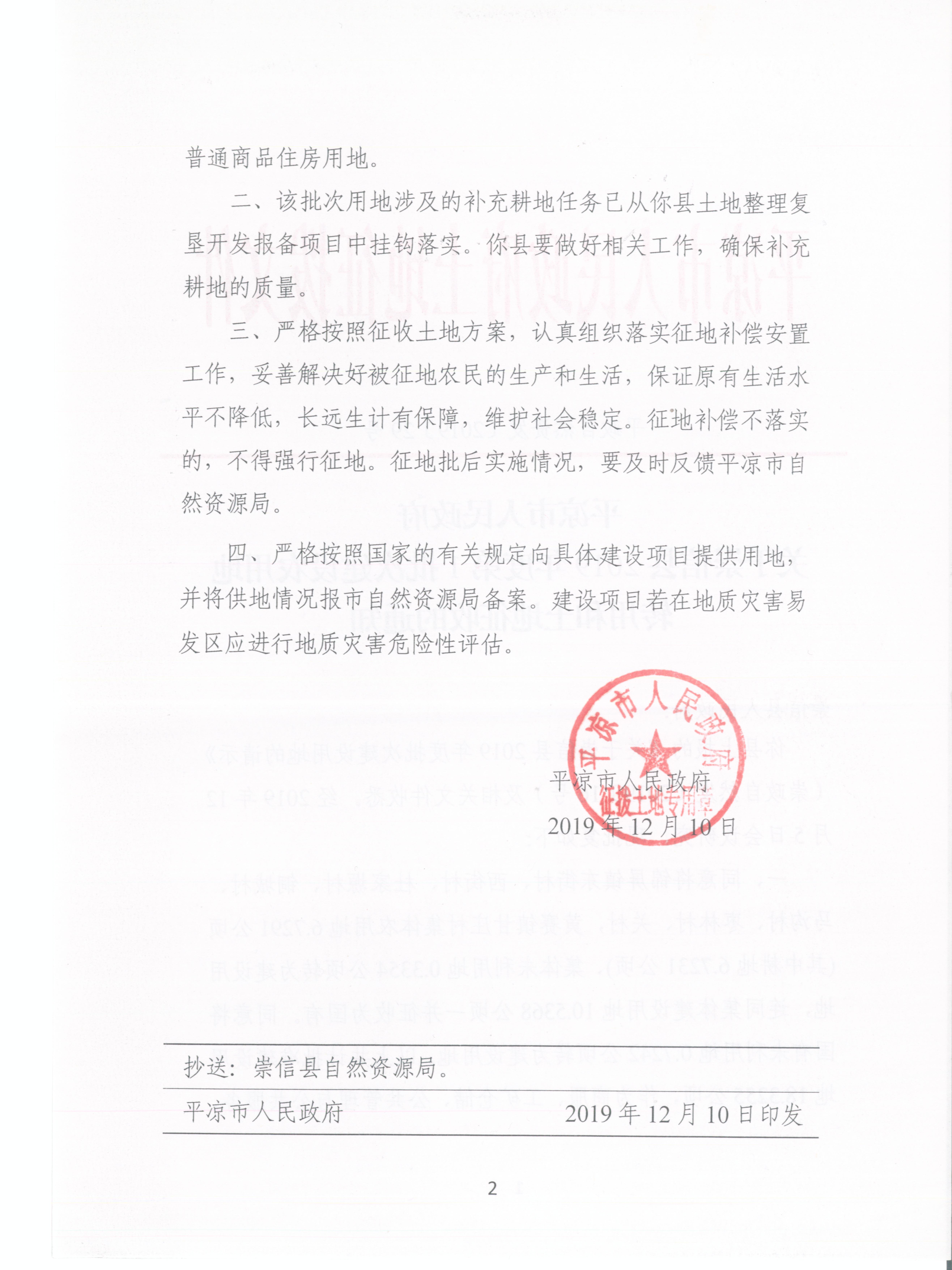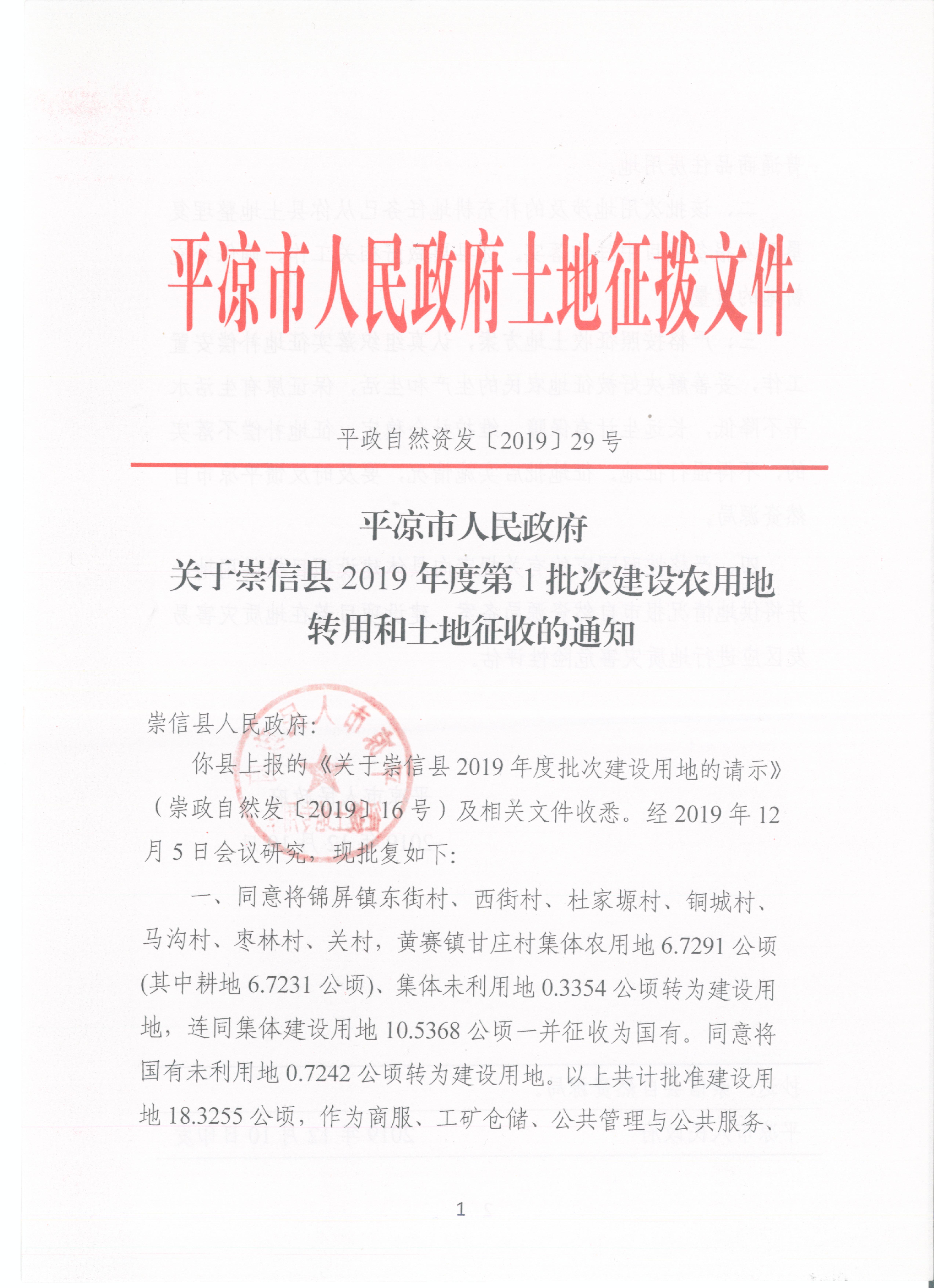 平凉市人民政府关于崇信县2019年度第1批次建设农用地转用和土地征收的通知 发文日期:2019-12-10 00:00 来源:崇信县自然资源局 作者:崇信国土局 编辑:崇信国土局 扫一扫在手机打开当前页 上一篇: 崇信县国有建设用地使用权挂牌出让成交结果公示 下一篇: 崇信县人民政府关于崇信县2019年第1批次建设用地征收土地公告