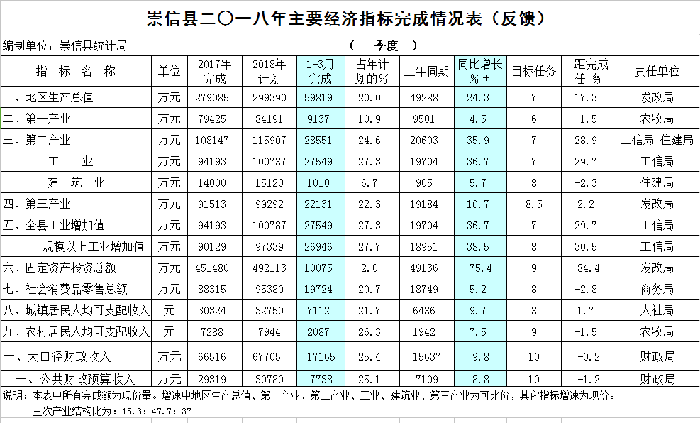 崇信县二○一八年一季度主要经济指标完成情况表 发文日期:2018-05-29 00:00 来源:崇信县统计局 作者:崇信统计局 编辑:星云科技 扫一扫在手机打开当前页 上一篇: 崇信县二○一八年上半年主要经济指标完成情况表 下一篇: 2017年前三季度崇信县经济运行情况分析
