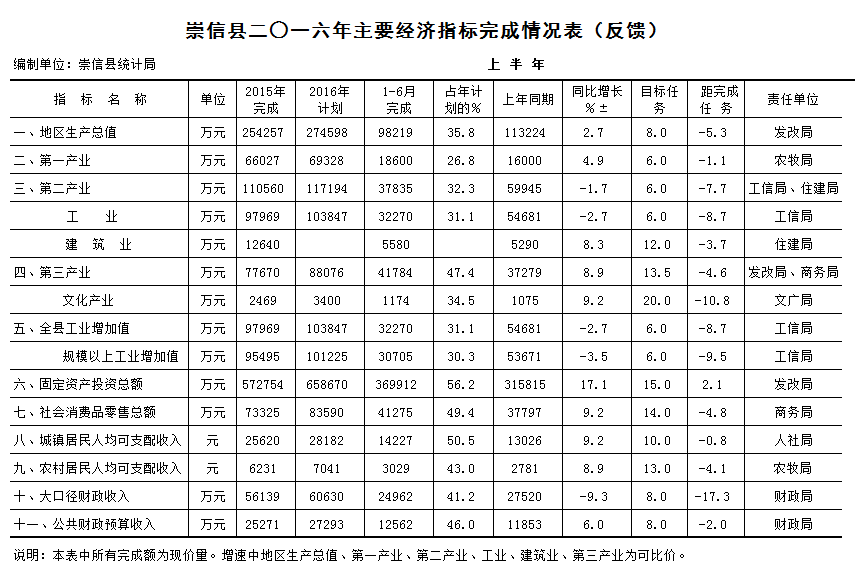 崇信县二○一六年上半年主要经济指标完成情况表(反馈) 发文日期:2017-09-27 00:00 来源:崇信县统计局 作者:崇信统计局 编辑:星云科技 扫一扫在手机打开当前页 上一篇: 崇信县二○一六年全年主要经济指标完成情况表(反馈) 下一篇: 崇信县二○一七年主要经济指标完成情况表(反馈)