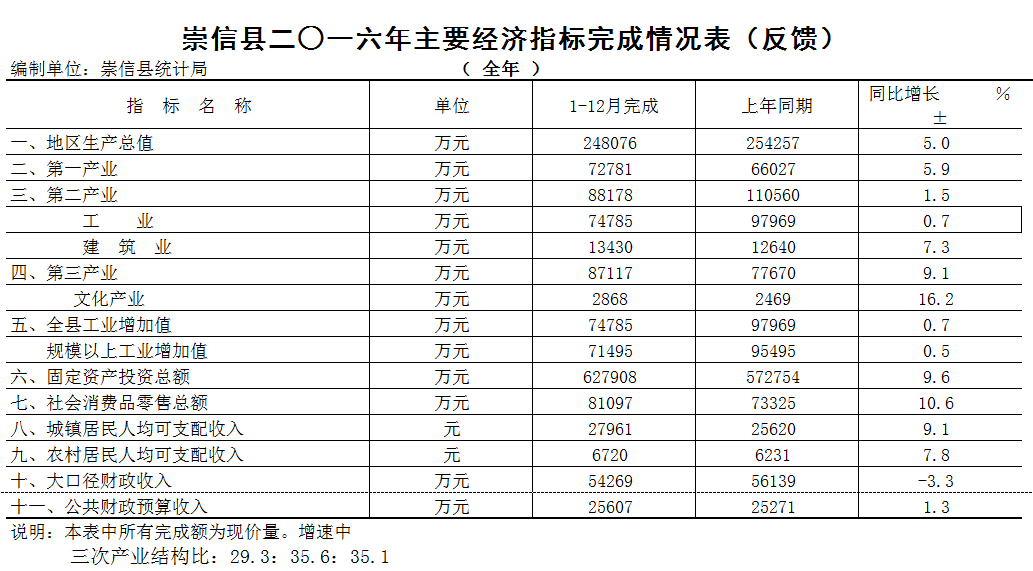 崇信县二○一六年全年主要经济指标完成情况表(反馈) 发文日期:2017-09-27 00:00 来源:崇信县统计局 作者:崇信统计局 编辑:星云科技 扫一扫在手机打开当前页 上一篇: 崇信县二○一一年全年主要经济指标完成情况表 下一篇: 崇信县二○一六年上半年主要经济指标完成情况表(反馈)