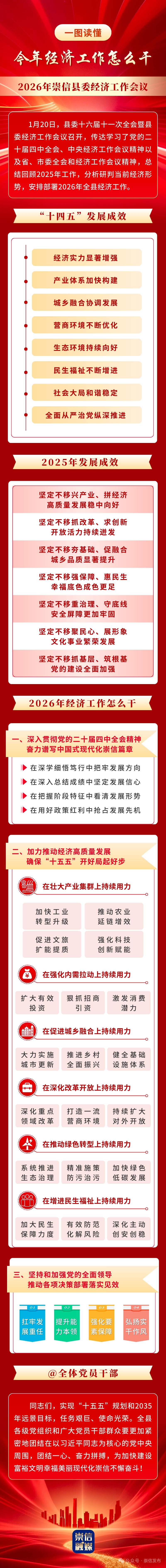 一图读懂|2026年崇信县委经济工作会议 发文日期:2026-01-21 09:00 来源:崇信县融媒体中心 作者:崇信县融媒体中心 编辑:梁丽菲 扫一扫在手机打开当前页 上一篇: 2026年县安委会第一次全体(扩大)会议暨全县安全生产工作会议召开 下一篇: 刘小平主持召开县政府务虚会议